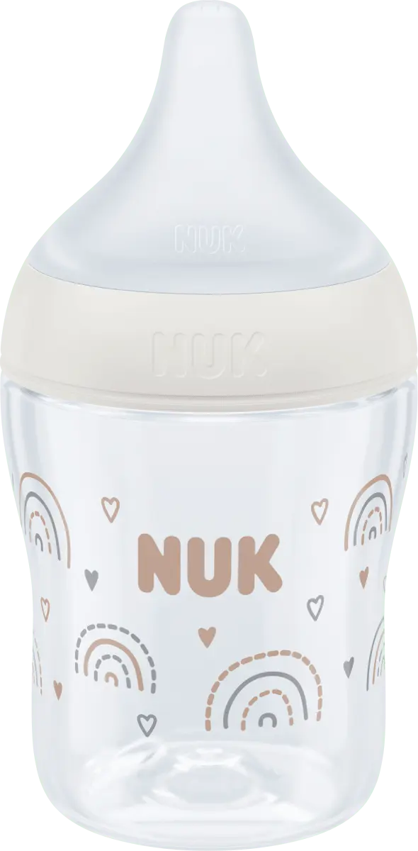 Бежевая детская бутылочка Perfect Match от NUK имеет емкость 150 миллилитров и подходит для малышей с рождения. Благодаря мягкому и эластичному материалу соска нежно прилегает к губам и небу ребенка. Благодаря обтекаемой форме соски бутылочка обладает антиколиковой функцией и обеспечивает спокойный и естественный поток питья. Широкая и мягкая опора для губ создает у младенца знакомое ощущение кожи.