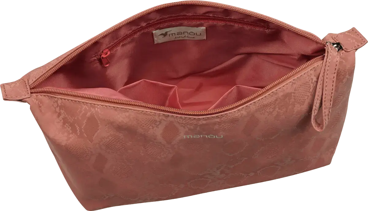 Эта необычная косметичка старо-розового цвета от Soapland. из искусственной кожи и со змеиным принтом. Это делает эту сумку абсолютно эффектной. Благодаря размеру каждый косметический аксессуар найдет свое место, а благодаря дополнительным небольшим внутренним карманам - множество другой утвари.