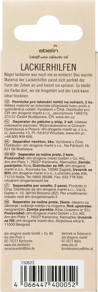 С разделителем пальцев ebelin красить ногти на ногах стало проще, чем когда-либо прежде. Мягкий материал средств для рисования идеально адаптируется к форме пальцев ног и оптимально их разделяет. Это означает, что цвет останется там, где он должен быть, и краска сможет идеально высохнуть. Этот товар доступен в разных версиях. К сожалению, предварительно выбрать конкретную версию для этого заказа невозможно.