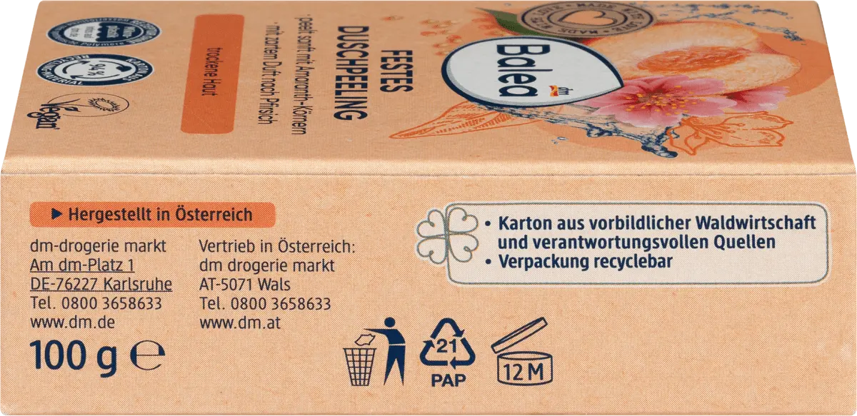 Твердый пилинг для душа персиковый 100г Balea 957₽