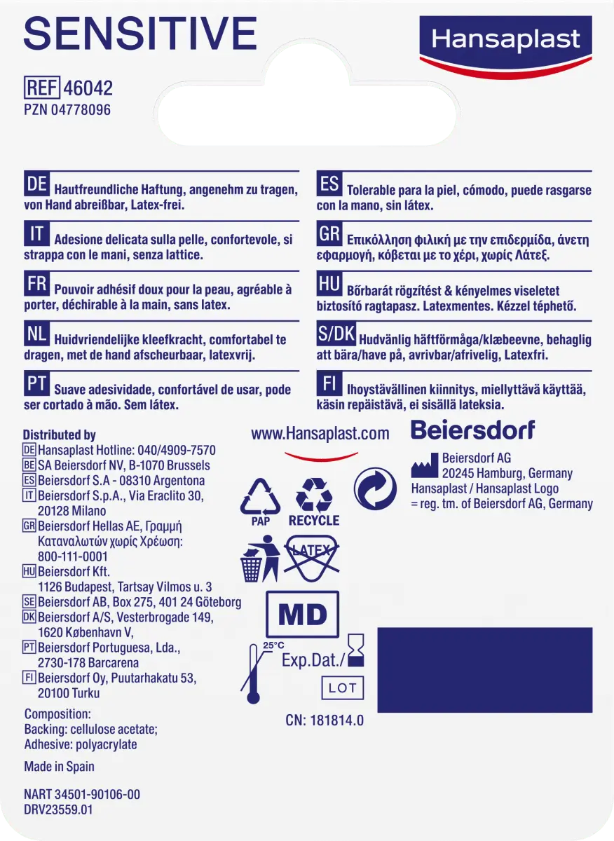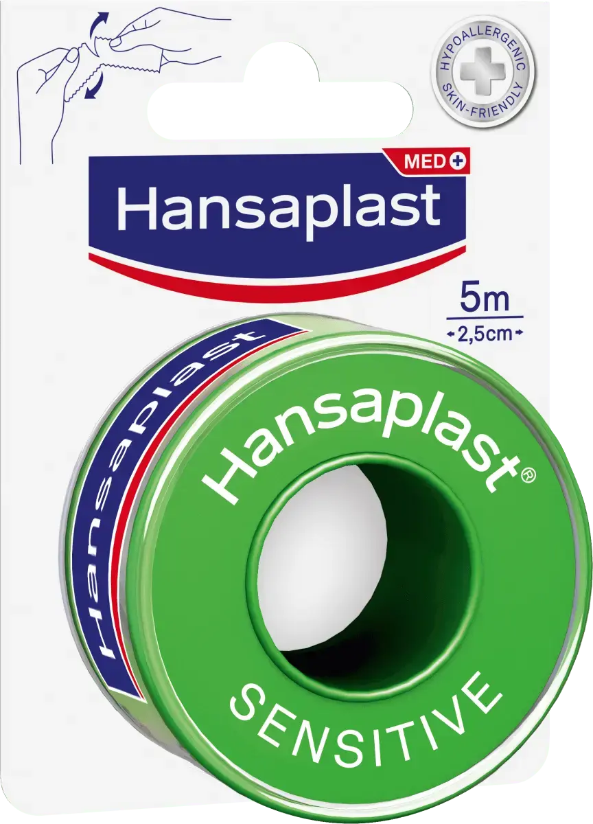Разворачивающаяся лента Hansaplast для чувствительной к фиксирующей штукатурке имеет длину пять метров и ширину 2,5 см. Полоски с высокой клейкостью можно регулировать вручную или с помощью ножниц по мере необходимости и желания. Приложение также подходит для чувствительной кожи.