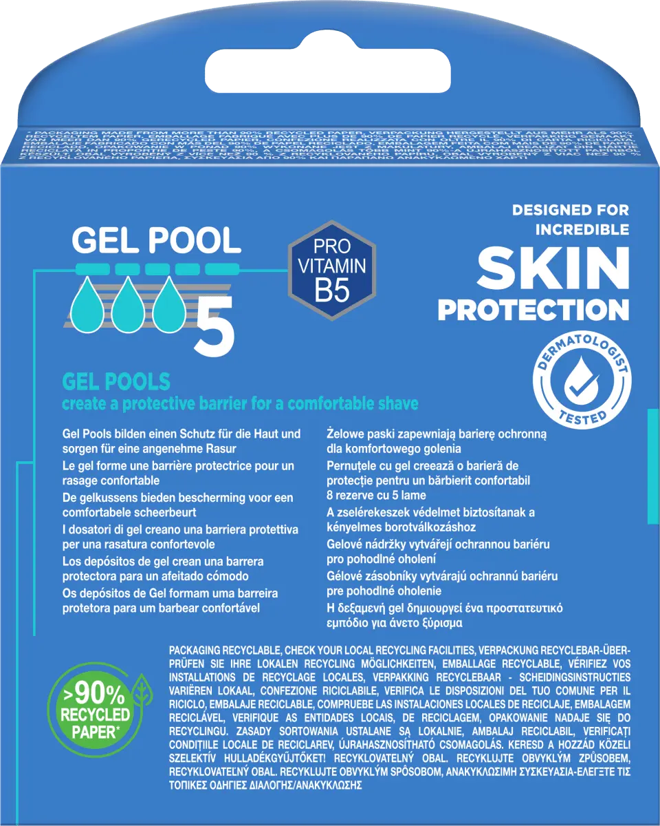Сменные лезвия Hydro 5 оснащены с увлажняющими гелевыми резервуарами. Дополнительные смазывающие полоски с алоэ вера позволяют лезвиям бритвы легко скользить по коже. Встроенный триммер обеспечивает точные контуры. Для несравненно нежного и гладкого бритья.