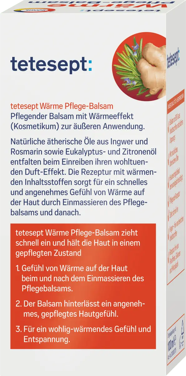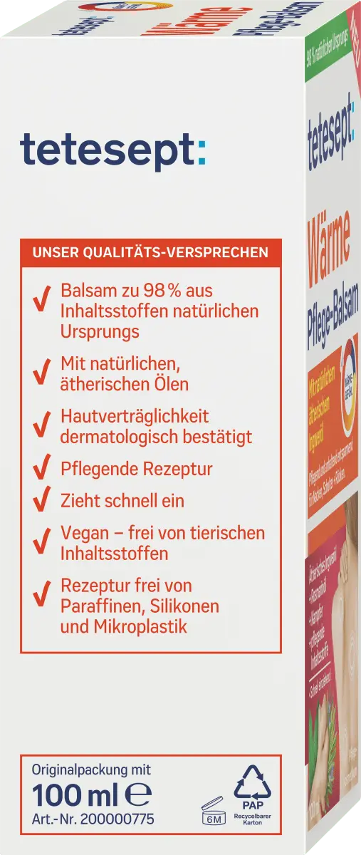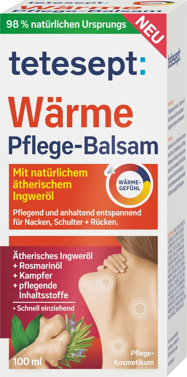 Если болят мышцы и суставы, поможет термоуходовой бальзам от Тетесепт. Бальзам быстро впитывается и оказывает приятный согревающий эффект. Для приятного ощущения и релаксации.