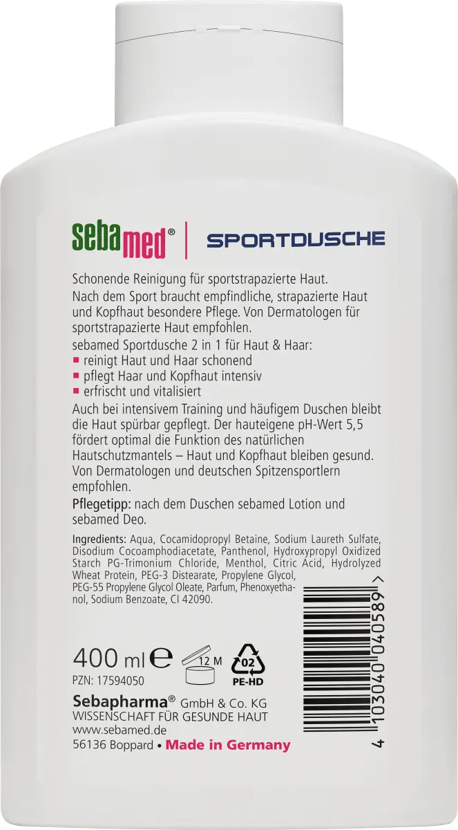 >Тренировка доводит вас и вашу кожу до предела. С помощью спортивного душа от Sebamed вы сможете сделать что-то полезное для своей кожи после напряженной спортивной тренировки. Спортивный гель для душа 2-в-1 идеально подходит для мытья тела и волос. Благодаря pH-нейтральному для кожи составу поддерживается естественный защитный слой кожи. Кожа, подвергшаяся особому стрессу после интенсивных тренировок или частого принятия душа, интенсивно обновляется и получает особенно хороший уход. Для ухоженной и здоровой кожи.