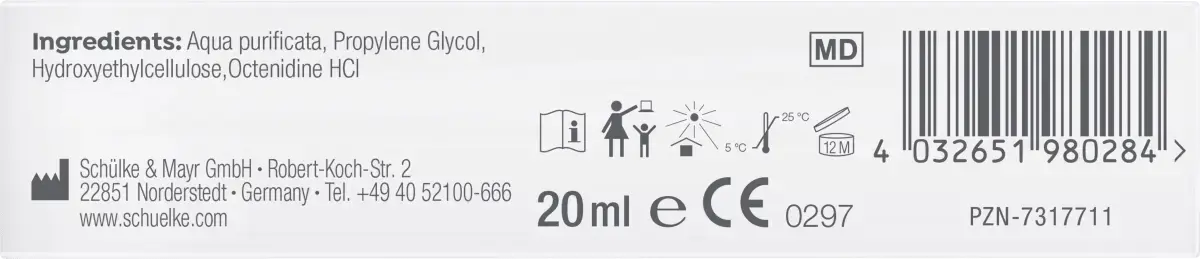 Состав: Aqua Purificata, пропиленгликоль, гидроксиэтилцеллюлоза, октенидин HCl