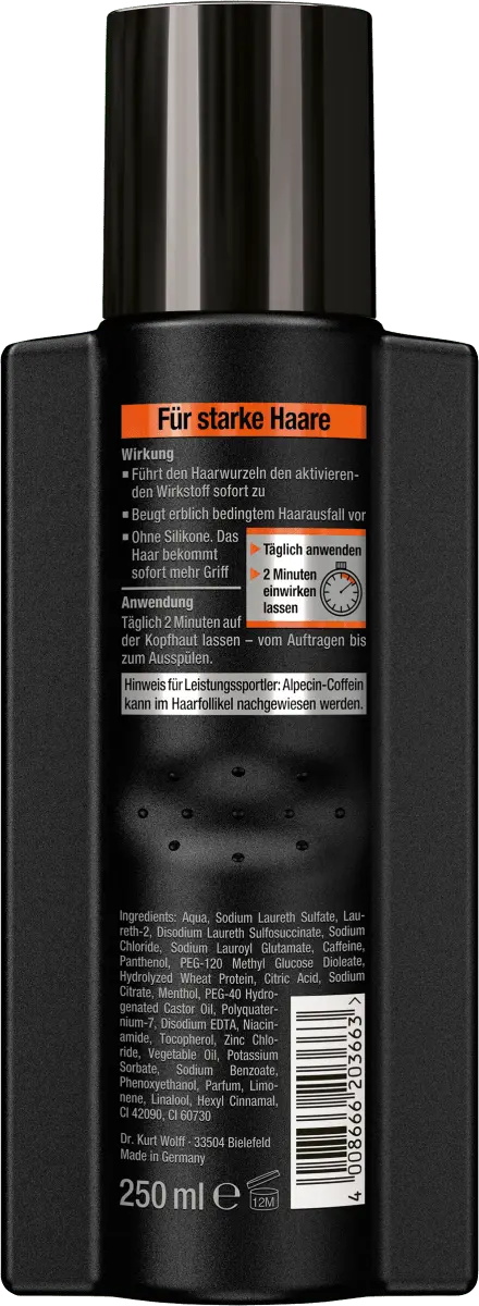 Оставляйте на коже головы на 2 минуты в день - от нанесения до смывания. Примечание для спортсменов-спортсменов: кофеин Alpecin можно обнаружить в волосяном фолликуле.
