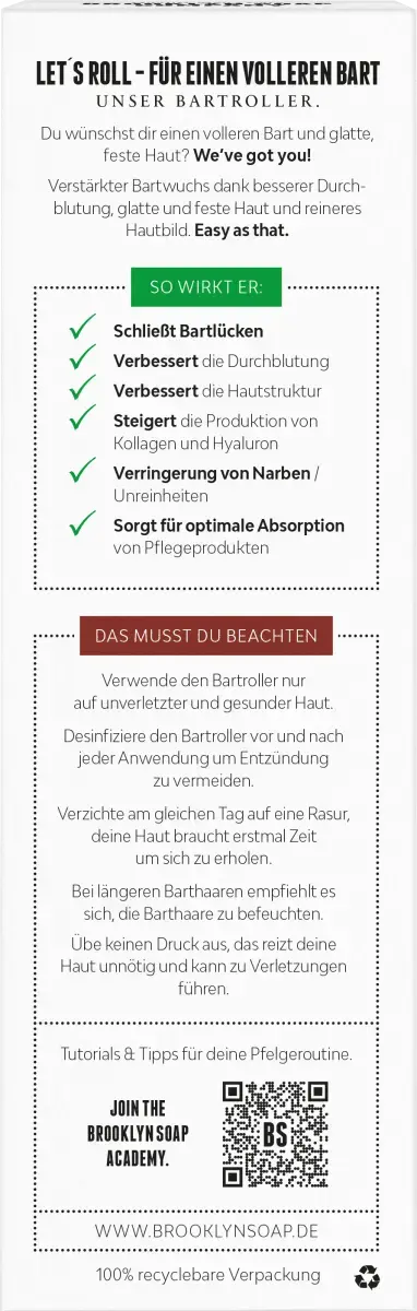 Удобный валик для массажа кожи под бородой или в области подбородка, чтобы стимулировать рост бороды. Легкость в обращении благодаря удобной ручке и приятному давлению ролика.