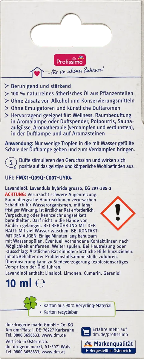 Натуральное эфирное масло Лавандин от Profissimo стимулирует обоняние и положительно влияет на психическое и физическое состояние. Идеально подходит для: велнеса, ароматизации помещений в аромалампах или диффузорах, попурри, настоев для сауны, ароматерапии (испарение и испарение), в аромалампе и на аромакамнях.