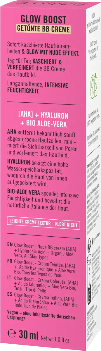 The Glow Bost Tinted BB Cream от SANTE Naturkosmetik обеспечивает мгновенное скрытие недостатков кожи. Формула обеспечивает коже интенсивное увлажнение и улучшает цвет лица. Для естественного красивого и даже обнаженного эффекта.