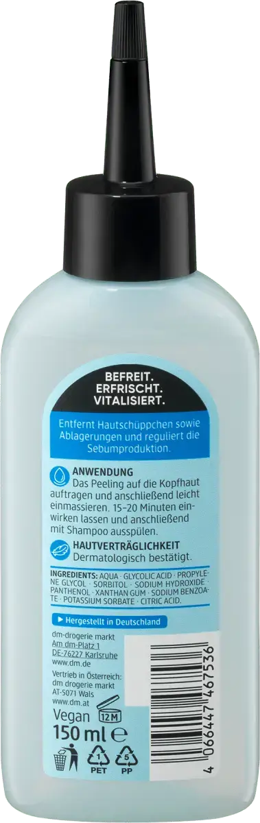 Пулинг кожи головы от Balea может помочь регулировать выработку кожного сала и придать вашей голове ощущение свежести. Уход за кожей головы удаляет клетки и отложения кожи и питает пантенолом. Для ощущения глубокой чистоты кожи.
