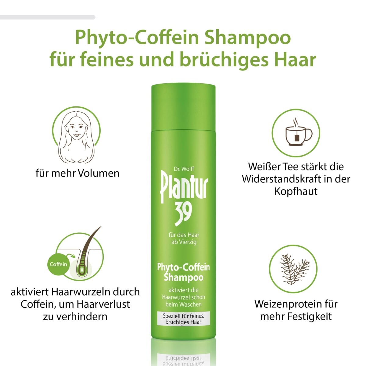 Шампунь Plantur 39 с фитокофеином для тонких, ломких волос активирует корни волос при мытье. Он намеренно содержит низкие дозы ингредиентов для ухода, чтобы прическа сохраняла объем. Придает тонким волосам необходимую силу и объем.Фитоактивные ингредиенты от природы помогают коже головы защититься от последствий падения уровня эстрогена.