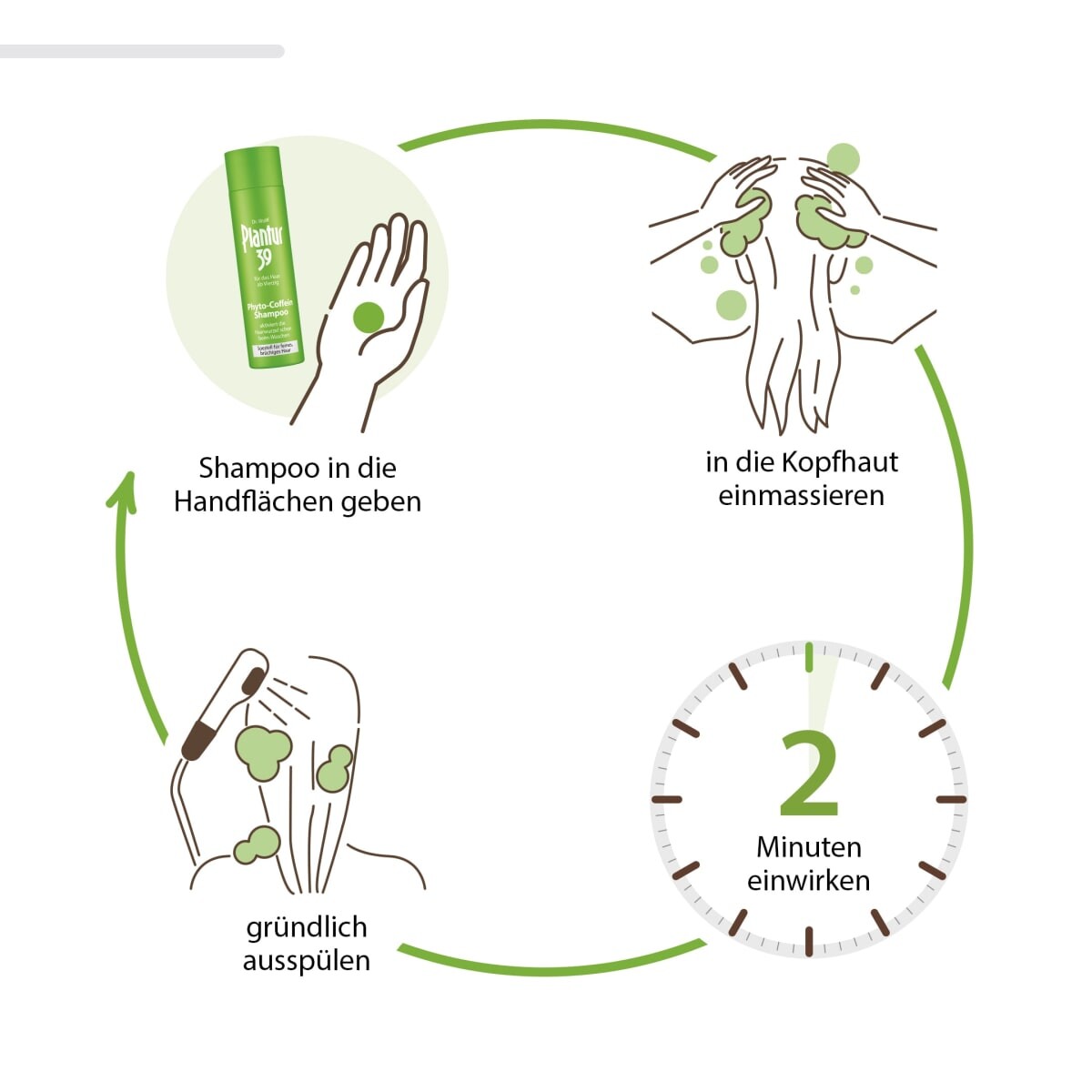 Оставьте шампунь с фитокофеином работа 2 минуты. Альтернативный вариант: нанести фитокофеиновый тоник на кожу головы, не смывать.
