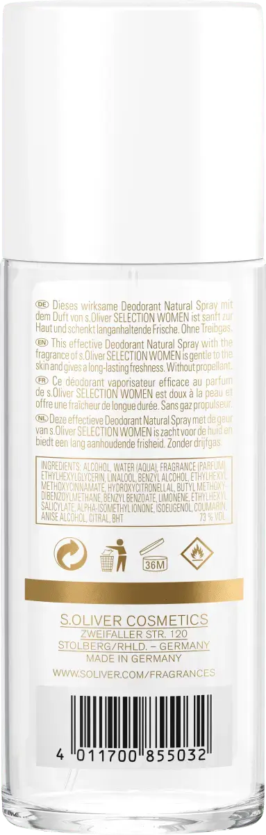 Эффективный дезодорант-спрей с премиальным ароматом от s.Oliver Selection Women нежно воздействует на кожу и обеспечивает длительную свежесть. Он дополняет аромат s.Oliver Selection Women своей чувственной элегантностью.