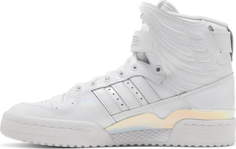 Эти кроссовки adidas, выполненные в классическом стиле Forum Hi в стиле Джереми Скотта, представлены в опаловом переливающемся оттенке и с перевернутыми крыльями. Другие ключевые особенности включают застежку на липучке, шнуровку и резиновую подошву в тон.