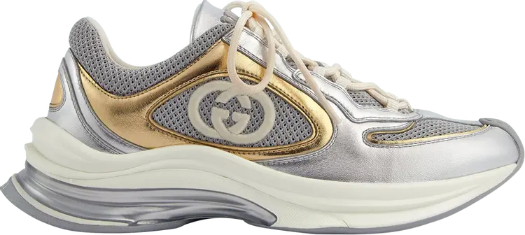 Кроссовки Gucci Wmns Run Sneaker 'Silver Gold Metallic', серебряный