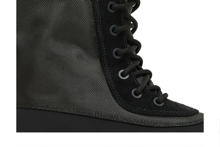 Ботинки Adidas Yeezy 950 Pirate сочетают в себе элементы утиного ботинка и ботинка в стиле милитари, выполненные из черной резины и баллистической нейлоновой сетки. Подкладка из кожи и парусины усиливает общую поддержку ботинка, а прочная межподошва ботинка с внутренней танкеткой из пеноматериала опирается на резиновую подошву с выступами для оптимального сцепления. На чередующихся язычках присутствует изящный фирменный стиль с тиснеными логотипами Adidas и Yeezy.