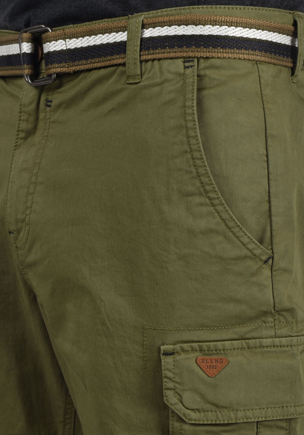 ДЕТАЛИ И ОСОБЕННОСТИ: разноцветный холщовый ремень с металлической пряжкой, нашивки с логотипом из искусственной кожи на грузовом кармане и над задним карманом, приятный мягкий эластичный материал, прямые брючины и подвернутые края с тесьмой в елочку, просторные грузовые карманы (на кнопках). застежка), задние карманы, боковые карманы, декоративная строчка на карманах, потайная застежка-молния и деревянная пуговица на поясе