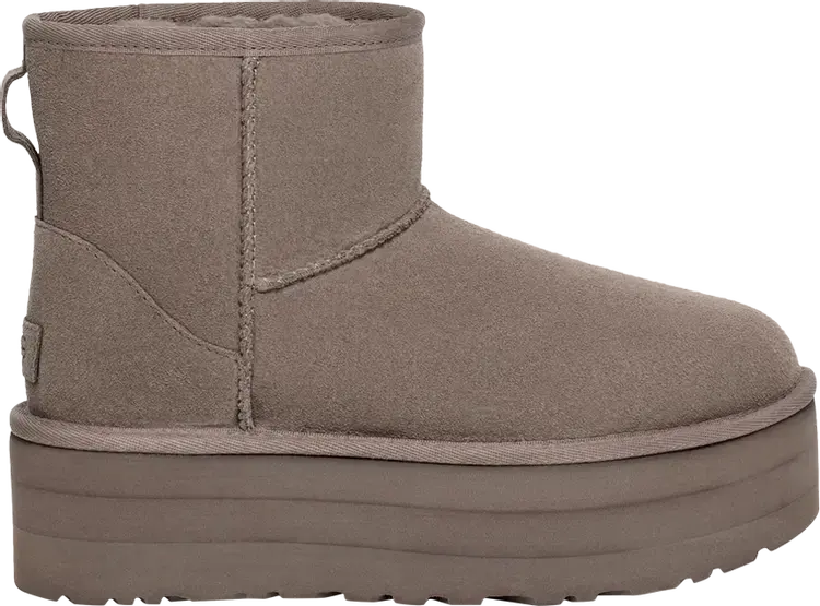 Активирован режим увеличения высоты ног. Классическая мини-платформа — это подарок, который продолжает дарить ощущение высоты и стильный образ. Она изготовлена из роскошной замши с подкладкой из нашей фирменной ткани UGGplush для фирменной мягкости.
