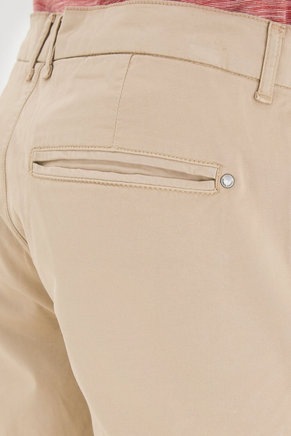 ДЕТАЛИ И ОСОБЕННОСТИ: Шорты-чиносы классического кроя, застежка на пуговицу и молнию, небольшой карман для монет с правой стороны, приятный мягкий и эластичный материал, пояс с петлями для ремня, два боковых кармана и два задних кармана, металл, металлическая аппликация на правый задний карман