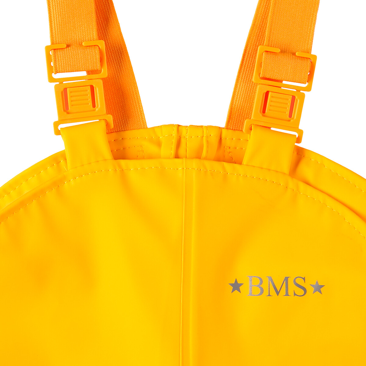 Грязевые штаны для дождя, пляжа и игровой площадки. Хорошая регулировка размера благодаря регулируемым по длине резиновым ремням и боковым кнопкам, которые можно регулировать по ширине. Со светоотражающими полосками на штанинах и эластичным поясом с регулируемой резинкой на штанинах, которая предотвращает задирание комбинезона.