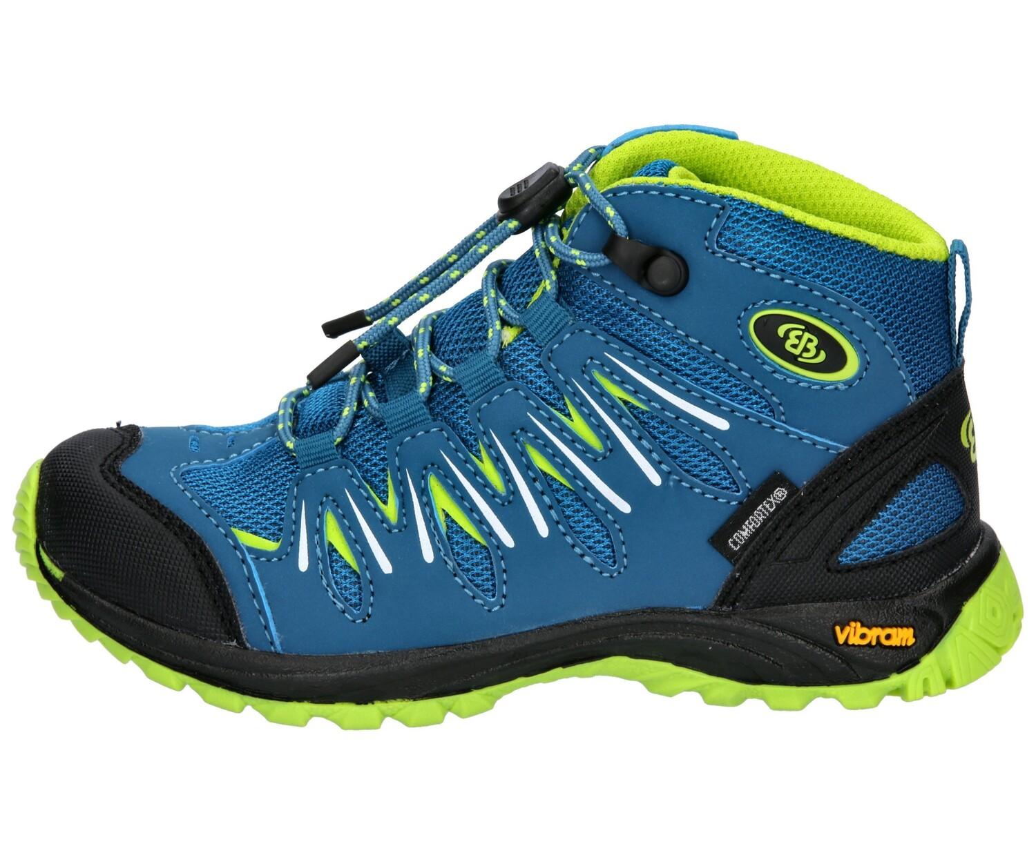 Высокие походные ботинки Expedition Kids от Brütting. Верх из прочного нейлона с синтетической отделкой. Практичная система быстрой шнуровки. Оснащен водонепроницаемой и дышащей климатической мембраной Comfortex. Внутри текстильная подкладка и сменная текстильная стелька. Ботинки для улицы оснащены устойчивой и нескользящей подошвой Vibram.