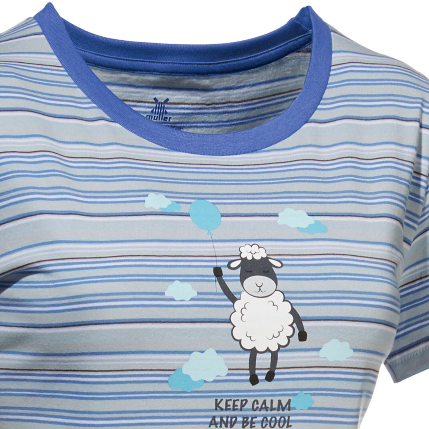 Женская ночная рубашка из одинарного джерси Erwin Müller. Милое ночное белье приглашает вас посчитать овец и сладко помечтать. Вязаные полоски, круглый вырез и принт, который особенно привлекает внимание, очень красивы. Невероятно мягкое, эластичное и приятное на ощупь качество отлично подходит для сна, оно приятно для кожи и дышит.
