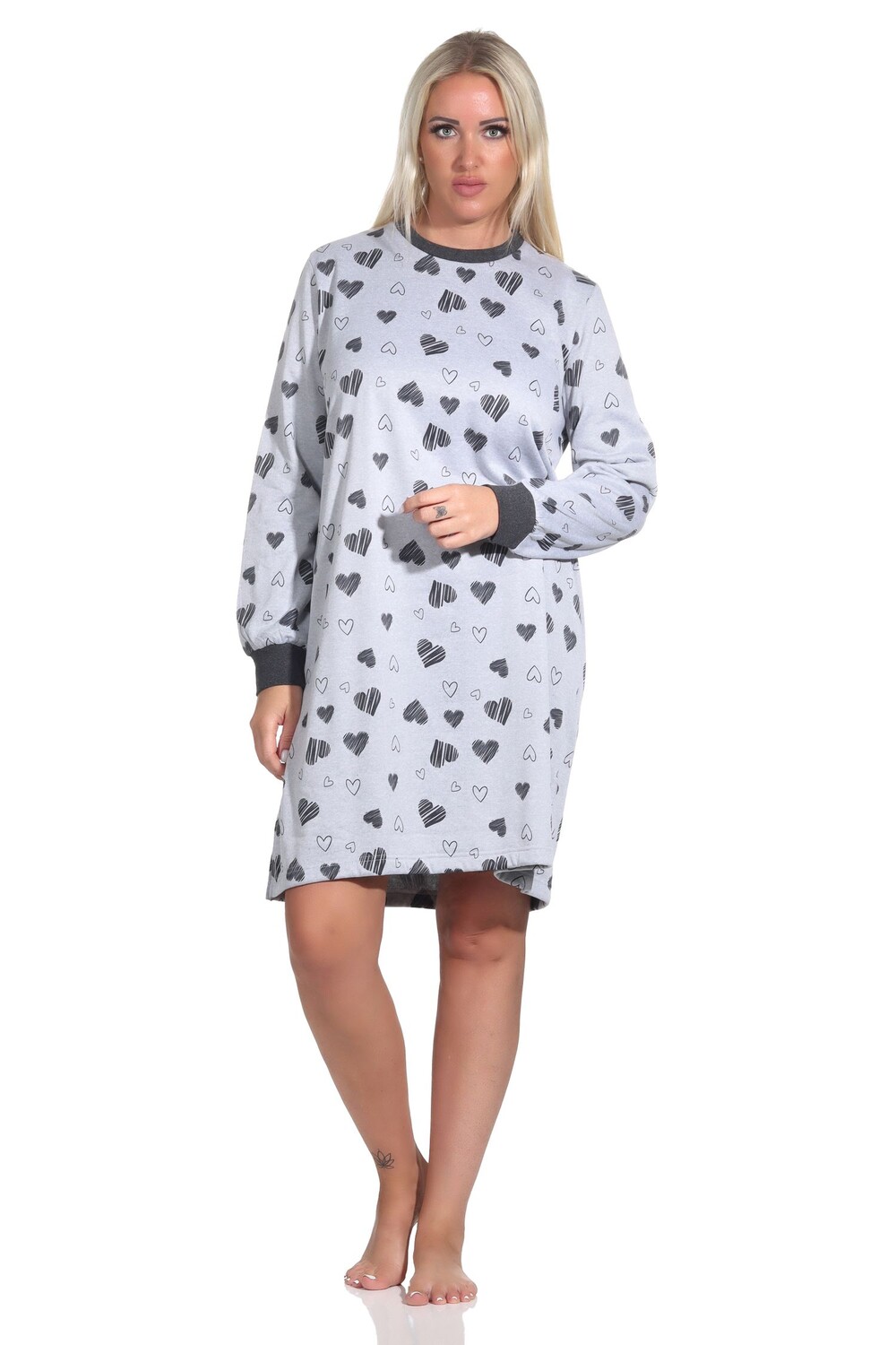 Женская махровая ночная рубашка с длинными рукавами и манжетами в виде сердца, также в размере oversize. Добро пожаловать в эту приманку для глаз! Эта женская махровая ночная рубашка с длинными рукавами и манжетами в виде великолепного сердечка впечатляет своим великолепным внешним видом, а именно красивым сердечком. Женские ночные сорочки из махровой ткани красивые, уютные, теплые и идеально подходят для прохладного и холодного времени года. Махровая ткань — более теплый материал.