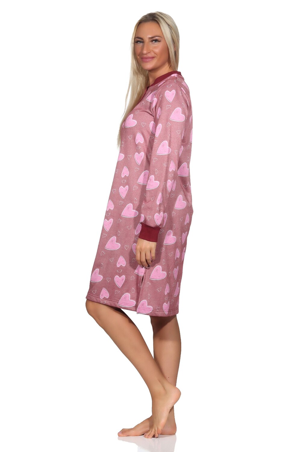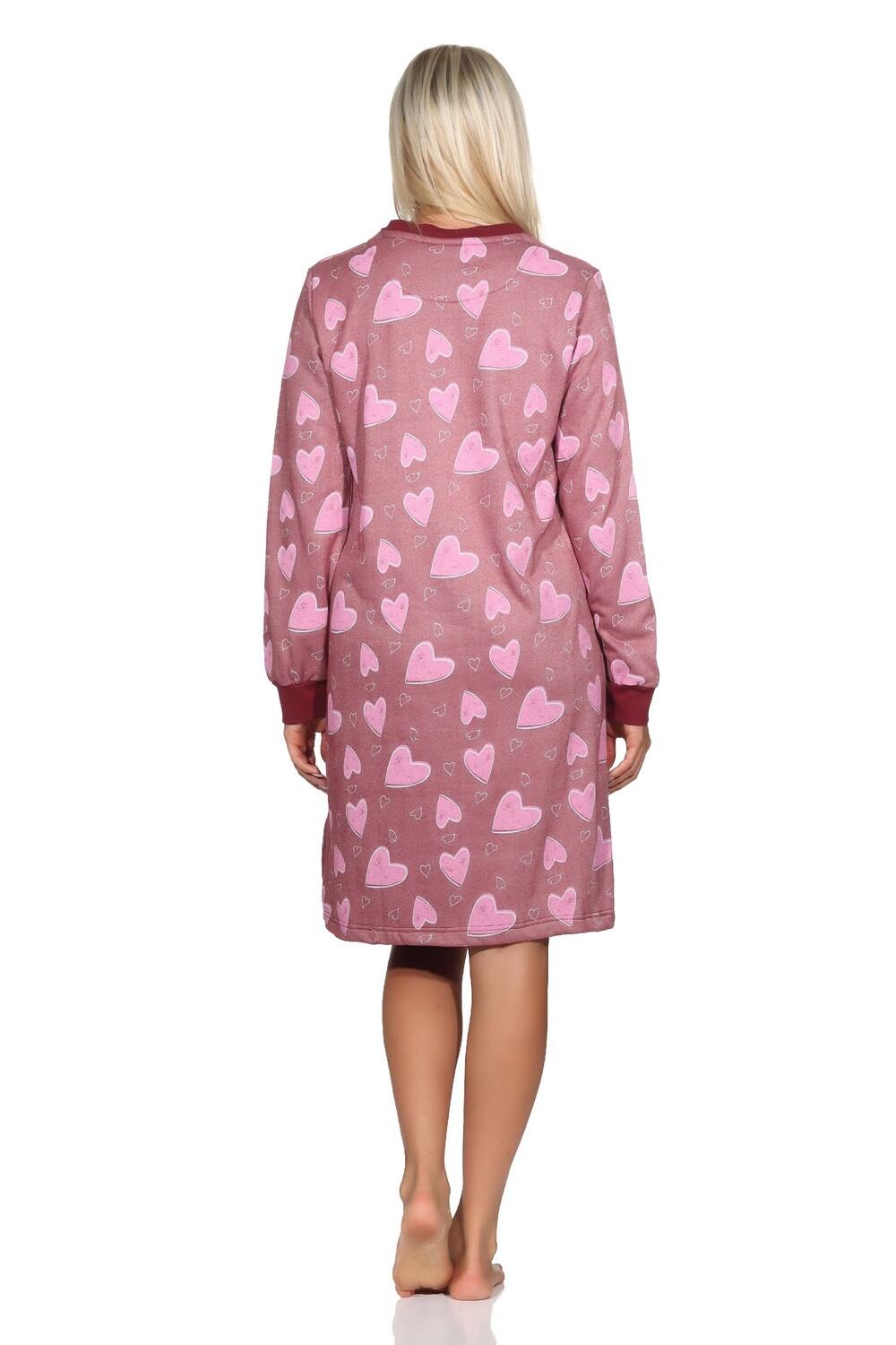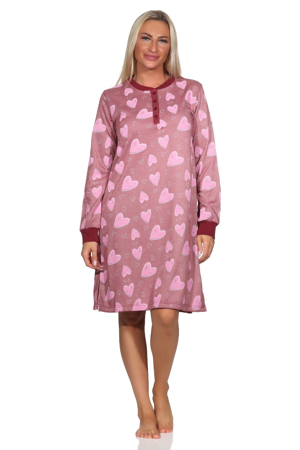 Женская ночная рубашка Normann из махровой ткани с длинными рукавами и манжетами в виде сердечек - также в размере оверсайз Эта женская ночная рубашка из махровой ткани с длинными рукавами и манжетами в виде сердечек - нечто особенное: красивая, пушистая, мягкая махровая ткань находится внутри. снаружи повсюду напечатано сердечко.