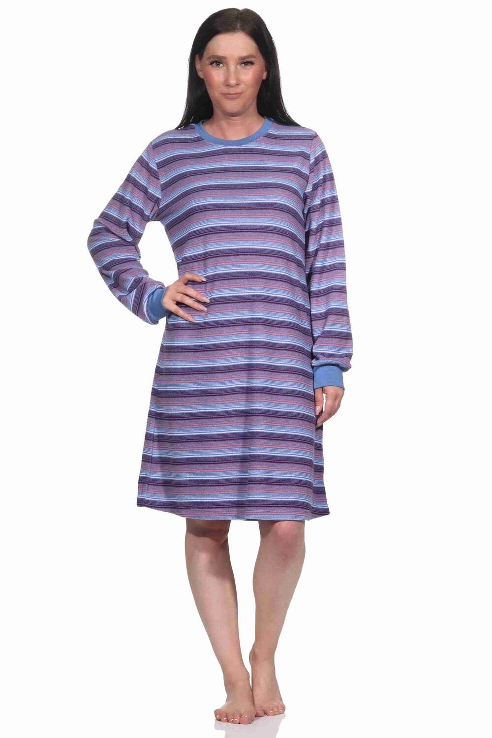 Женская ночная рубашка из махровой ткани с длинными рукавами и полосатыми манжетами - также в размерах больших размеров. Эта великолепная женская ночная рубашка из махровой ткани с длинными рукавами и красивыми полосатыми манжетами с прекрасными цветовыми гармониями пользуется популярностью.