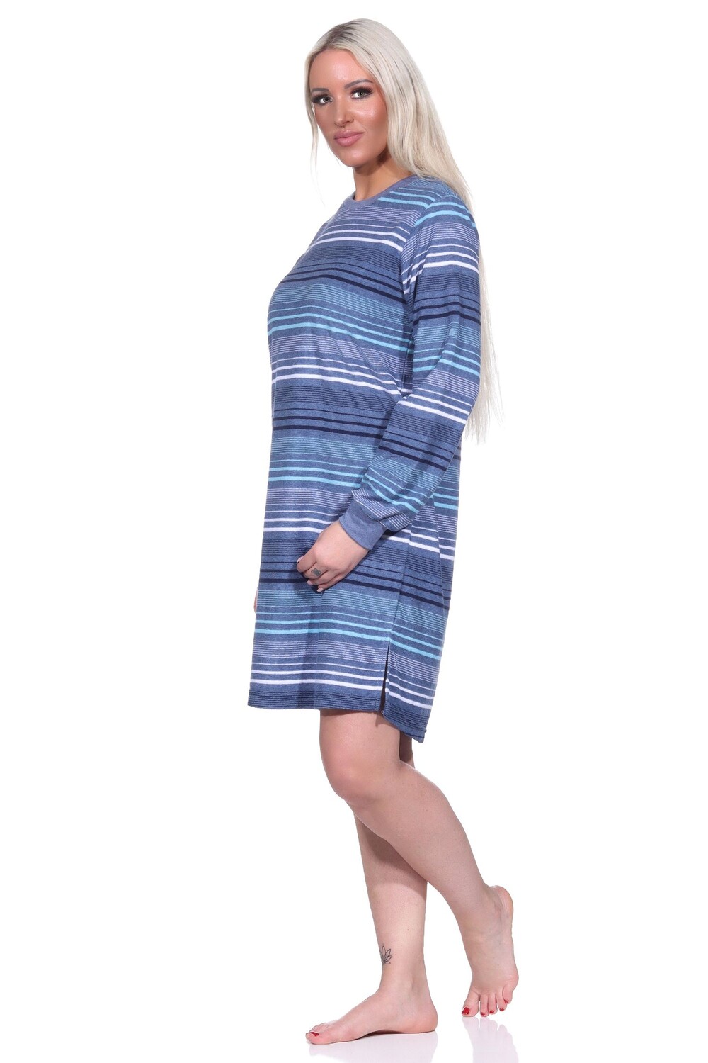 Женская ночная рубашка из махровой ткани с длинными рукавами и манжетами в полоску - также в больших размерах - 222 213 93 235