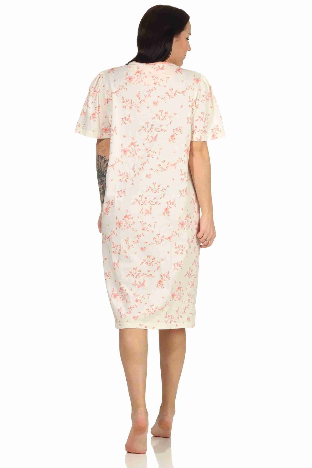 Элегантность вне времени! Эта женская ночная рубашка с короткими рукавами имеет элегантный классический вид, ее длина составляет 105 см, она украшена неподвластным времени цветочным принтом. Планка с пуговицами на вороте ночной рубашки обеспечивает ее удобство в ношении.