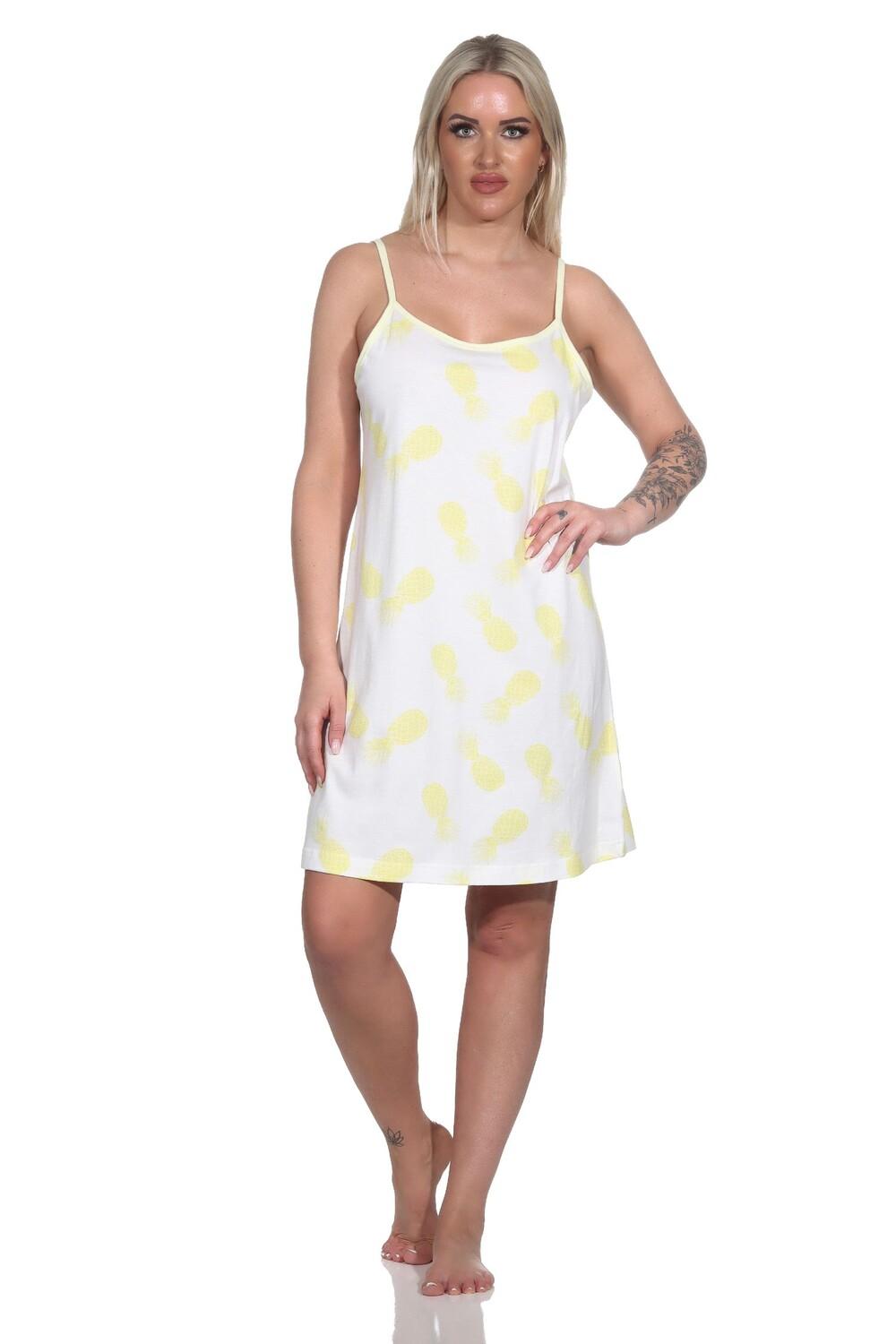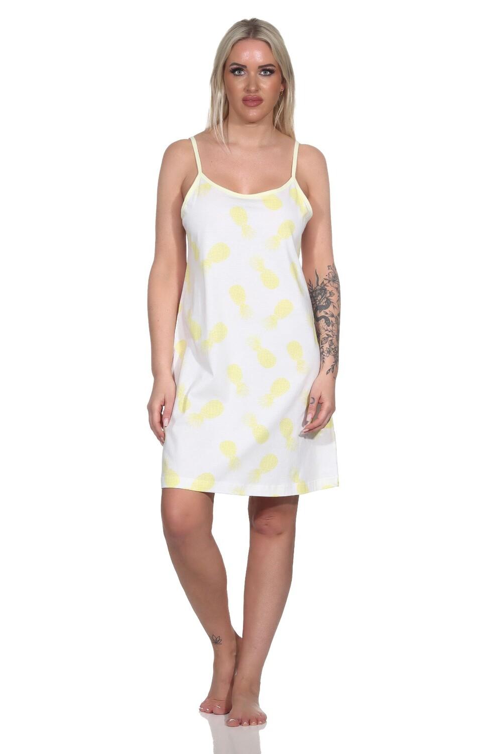 Женская ночная рубашка-спагетти Normann с мотивом ананаса - также в размерах больших размеров. Как насчет чего-нибудь ананасового, например, в качестве дизайна этой летней короткой ночной рубашки-спагетти от Normann? Эта великолепно выглядящая ночная рубашка сочетает в себе комфорт и дизайн, и благодаря своему внешнему виду ее можно носить и как домашнюю одежду.