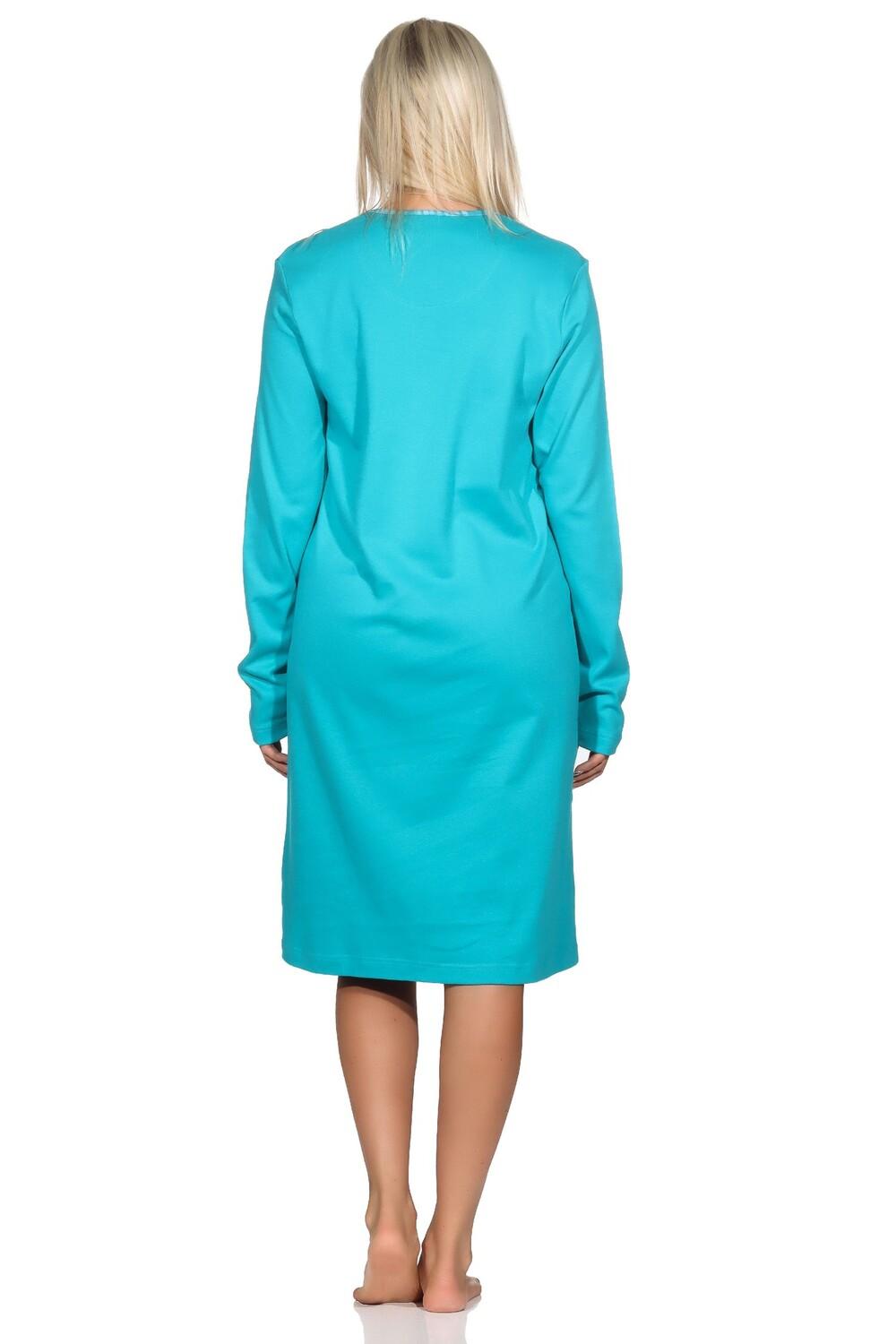 Женская ночная рубашка Normann с длинными рукавами из уютной ткани интерлок Красивая женская ночная рубашка с длинными рукавами из уютной ткани интерлок с вневременным внешним видом. Ночная рубашка однотонная, имеет нагрудный карман и планку с пуговицами на вырезе.