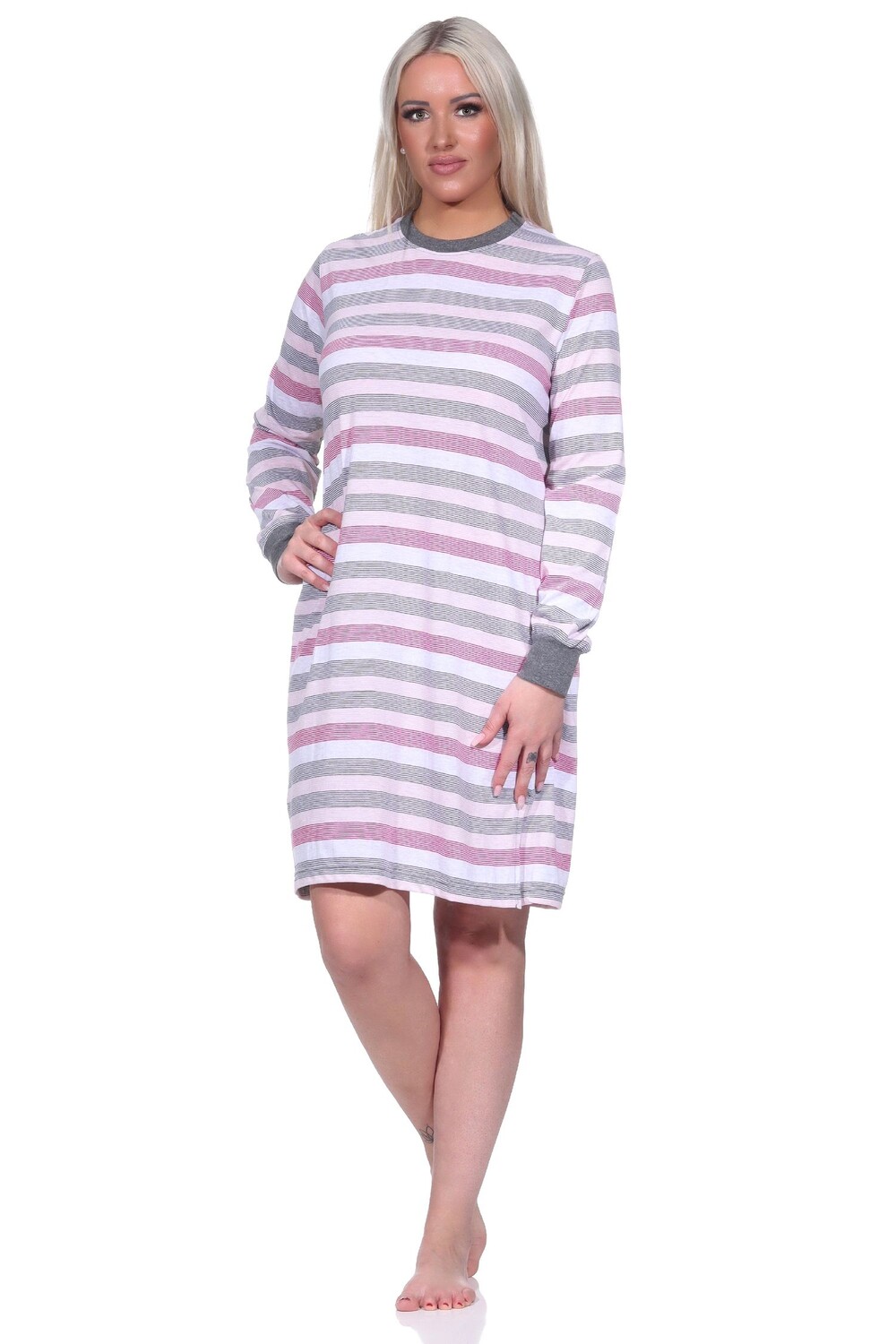 Женская ночная рубашка с длинными рукавами и манжетами в полоску - также в больших размерах - 222 213 90 102
