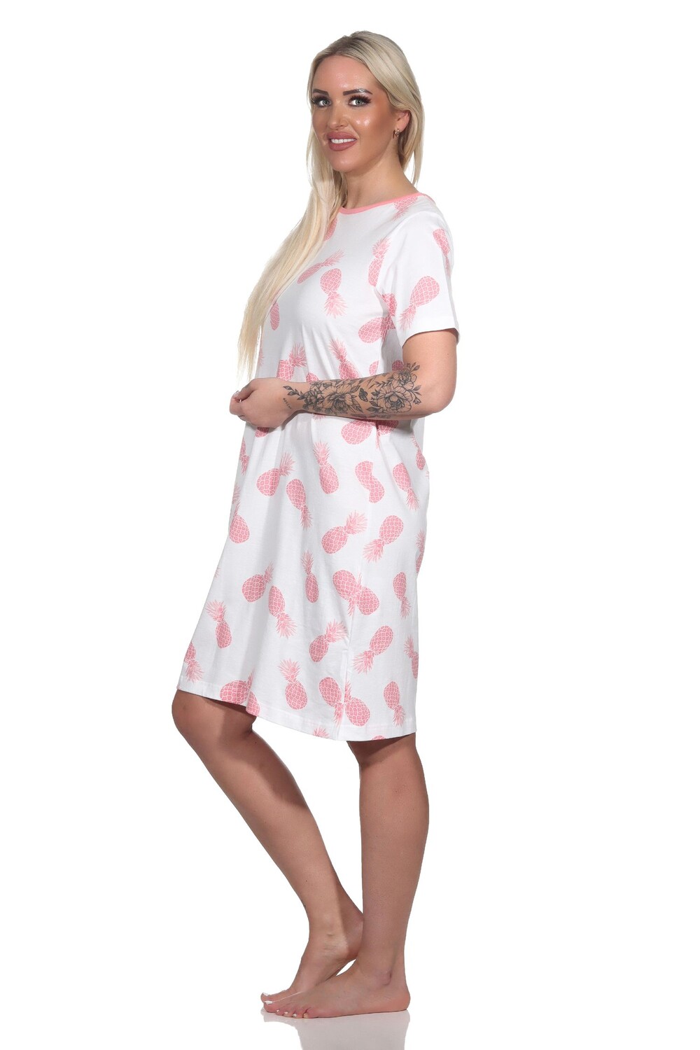 Женская ночная рубашка Normann с короткими рукавами и мотивом ананаса. Как насчет рисунка в виде ананаса, например, на этой летней ночной рубашке от Normann? Эта великолепная ночная рубашка с короткими рукавами сочетает в себе комфорт и дизайн, и благодаря своему внешнему виду ее можно удобно носить как летнюю домашнюю одежду, но в этой ночной рубашке вы также можете провести весь день в постели. Женские ночные рубашки с короткими рукавами — идеальный вариант. выбор для теплого времени года и для всех, кто часто потеет по ночам!