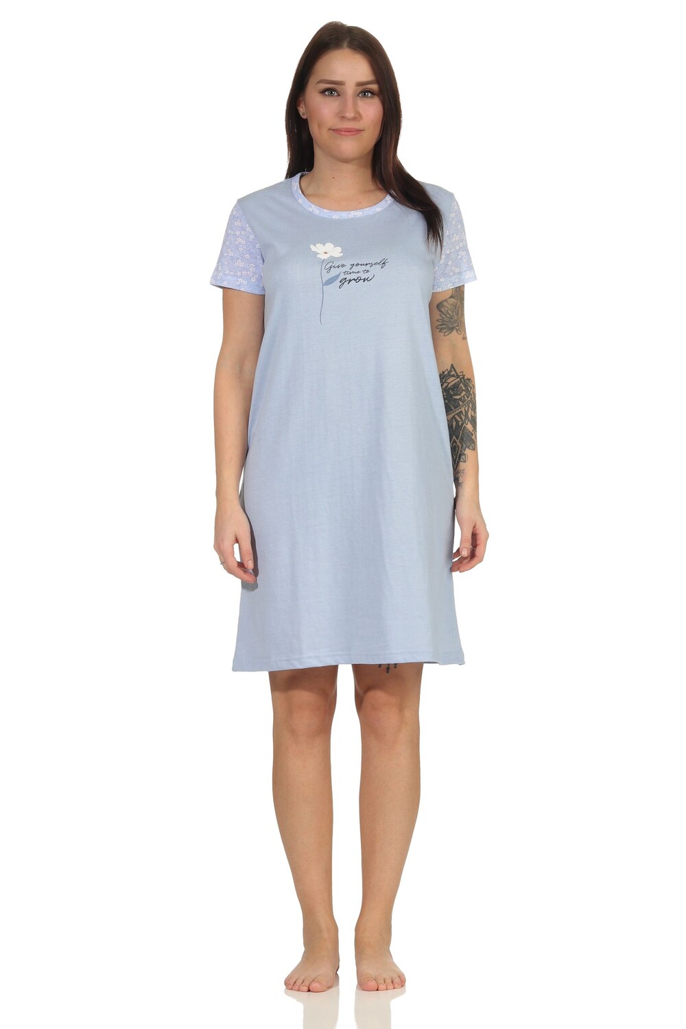 Любите цветы? Тогда эта красивая женская короткая ночная рубашка с цветочным узором — идеальный выбор для вас. Ночная рубашка украшена цветочным принтом и контрастными рукавами с цветочным принтом по всей поверхности. Круглый вырез пижамы контрастного цвета, что подчеркивает великолепный вид пижамы.