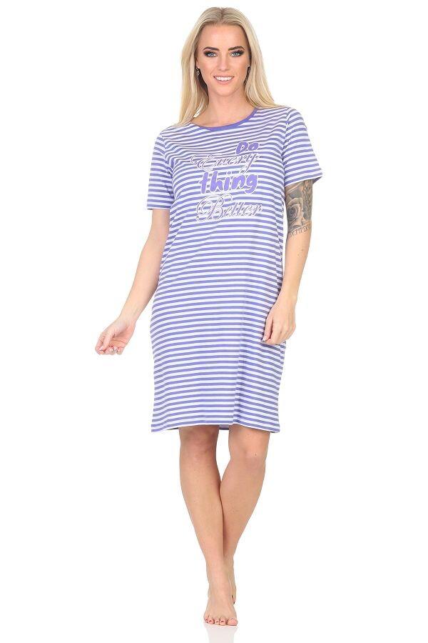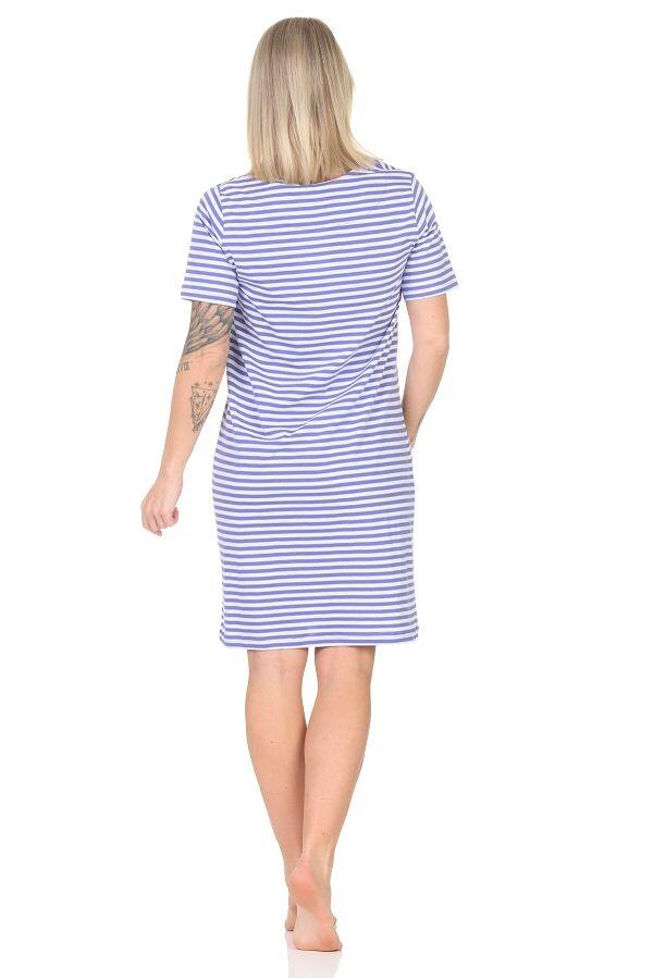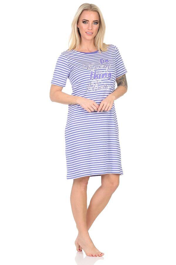 Женская ночная рубашка Normann с короткими рукавами в тонкую полоску и принтом спереди сейчас популярна. Эта красивая полосатая женская ночная рубашка с короткими рукавами от Normann сочетает в себе современный и неподвластный времени внешний вид, а также следующие особенности: Неподвластный времени элегантный вид в мелкую полоску, окрашенный в пряжу = всегда хорошо одета, будь то днем в качестве домашней одежды или домашнего платья или вечером в качестве удобной одежды. Ночные рубашки с короткими рукавами – идеальный выбор для теплого времени года и для всех, кто сильно потеет по ночам. Рубашка для сна из мягкого и удобного качественного трикотажа. Принт спереди на ночной рубашке. Приятная посадка, оптимальный комфорт при ношении благодаря комфортному крою. Материал: