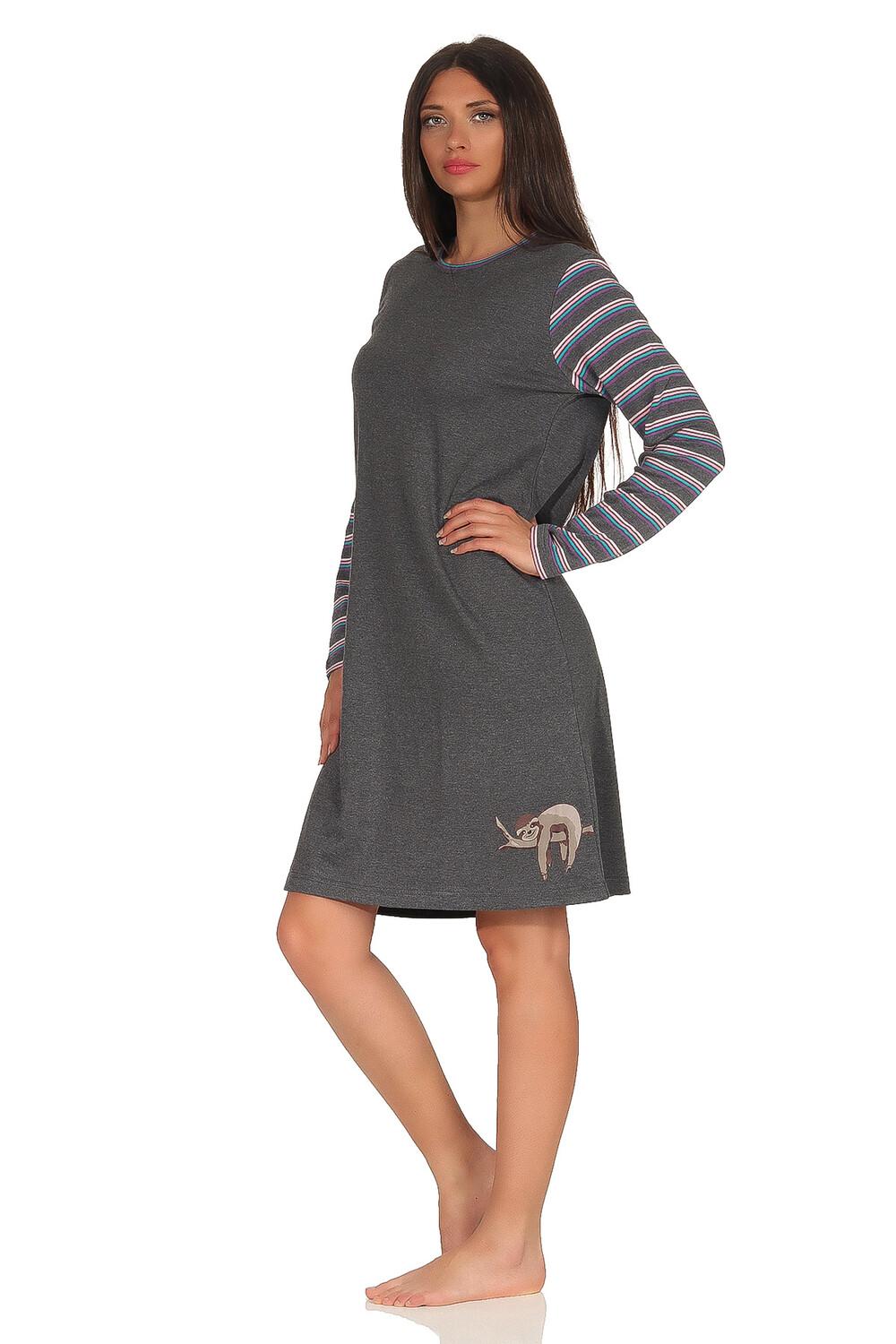 Женская приятная ночная рубашка интерлок с длинными рукавами - милый мотив ленивца - также в больших размерах 291 213 96 120