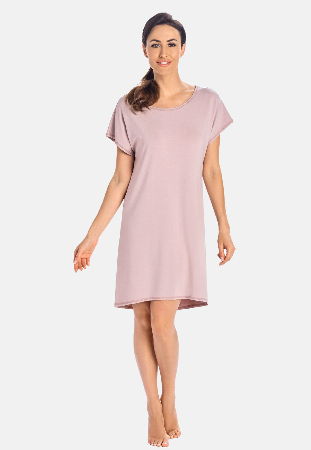 Женская ночная рубашка из вискозы воздушная и приятная на ощупь, ткань качественная и обеспечивает максимальный комфорт. Ночная рубашка доступна в широкой цветовой гамме. Рубашка доходит до колен, рукава короткие. Рубашка классического кроя, без украшений, проста и предназначена для женщин, ценящих простоту и комфорт. Вискоза, из которой изготовлена рубашка, пропускает воздух и гарантирует, что тело не потеет. Обеспечивает максимальный комфорт во время сна. Простой круглый вырез и изящный край вокруг шеи, а также простой край внизу и на рукавах. Крой рубашки свободный и напоминает букву А. Благодаря такому крою рубашка не ниспадает по фигуре, скрывает женские недостатки, скрывает женский живот и очень удобна в носке. Он прошит посередине сзади и благодаря этим швам утончает силуэт. В сочетании с халатом того же цвета он создает эффектный вечерний наряд.
