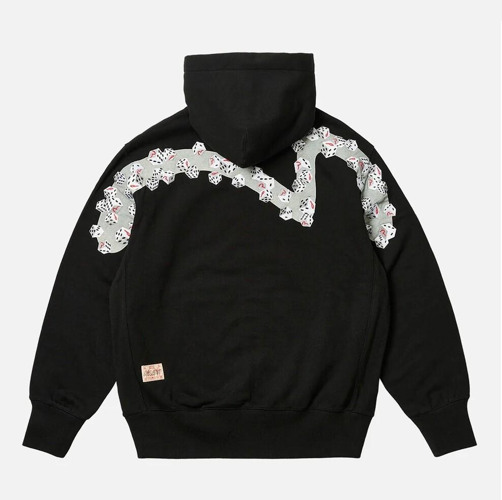 Эта толстовка - сотрудничество двух брендов Palace x Evisu, которое сочетает в себе уникальную ДНК обоих ведущих брендов, лидирующих в индустрии моды и придающих беспрецедентный стилевой эффект.