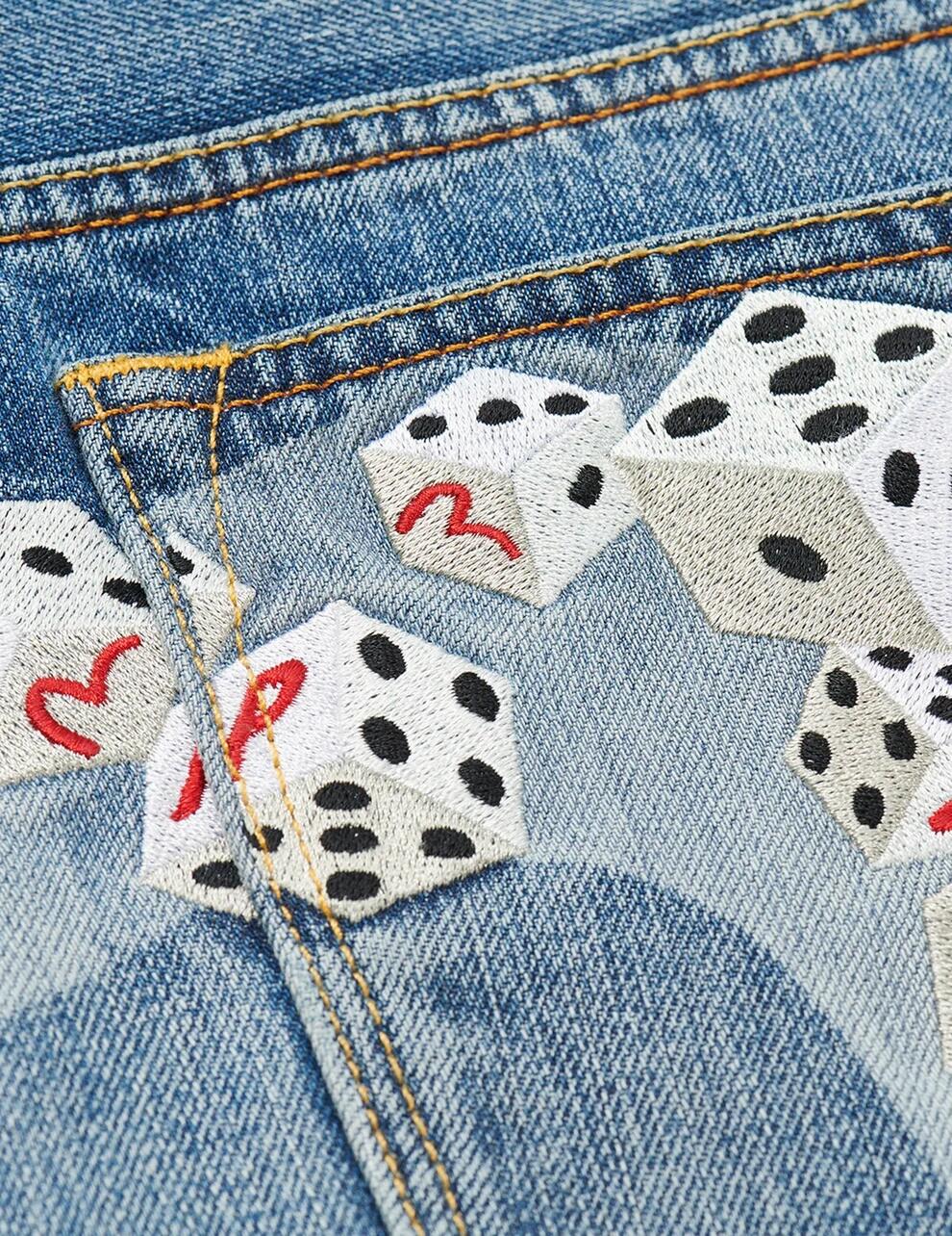 Совместная коллекция двух культовых брендов Palace x Evisu демонстрирует эти джинсы. В сочетании с жакетом в тон, независимо от того, носите ли вы их в комплекте или по отдельности, джинсы создают эффектный и модный образ.