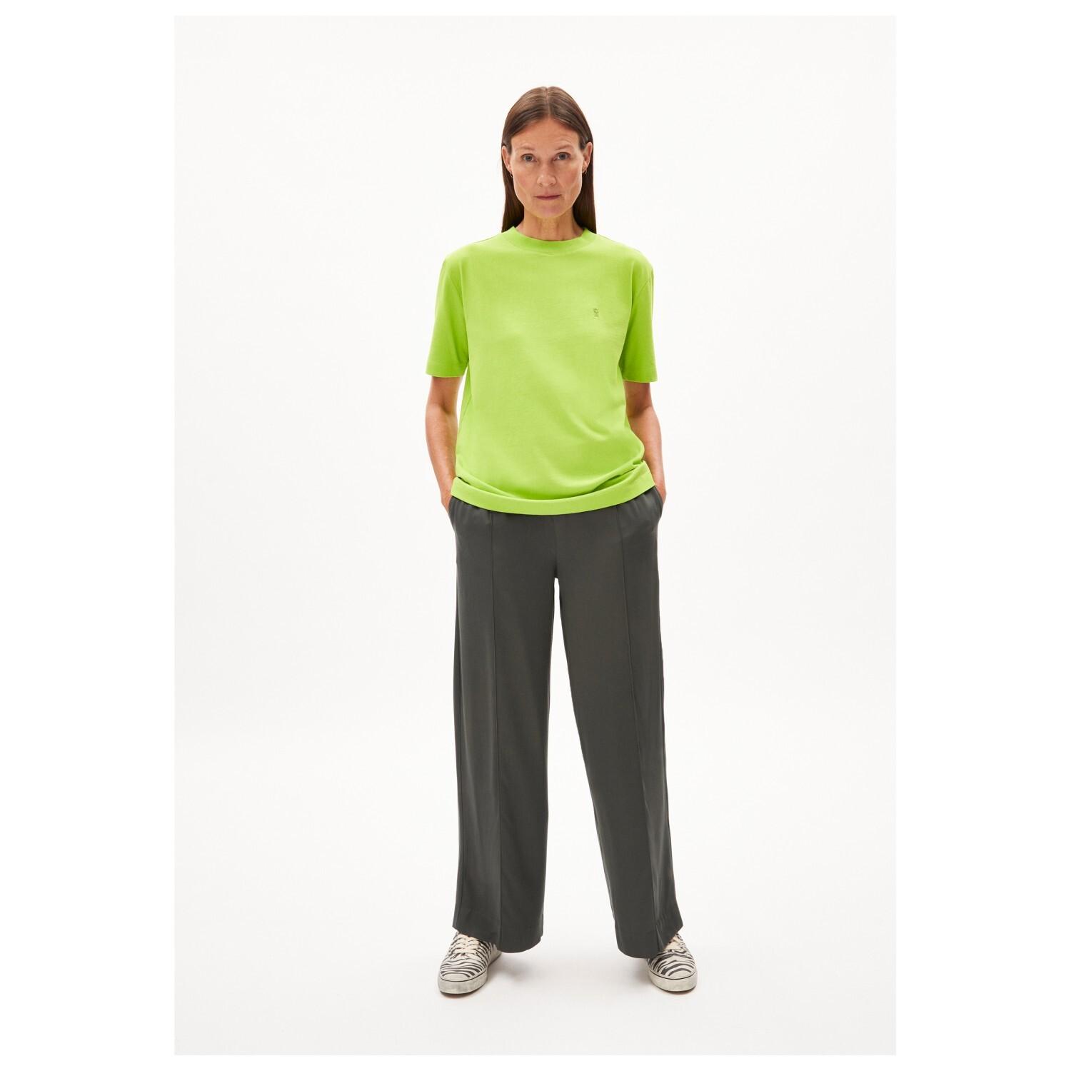 Женская Tarjaa от ARMEDANGELS должна быть базой в каждом гардеробе. Этот вневременной и современный образ можно носить в самых разных случаях. В теплые дни футболка особенно подходит для отдыха. Круглый вырез горловины спроектирован таким образом, чтобы удобно облегать тело, не сковывая его.