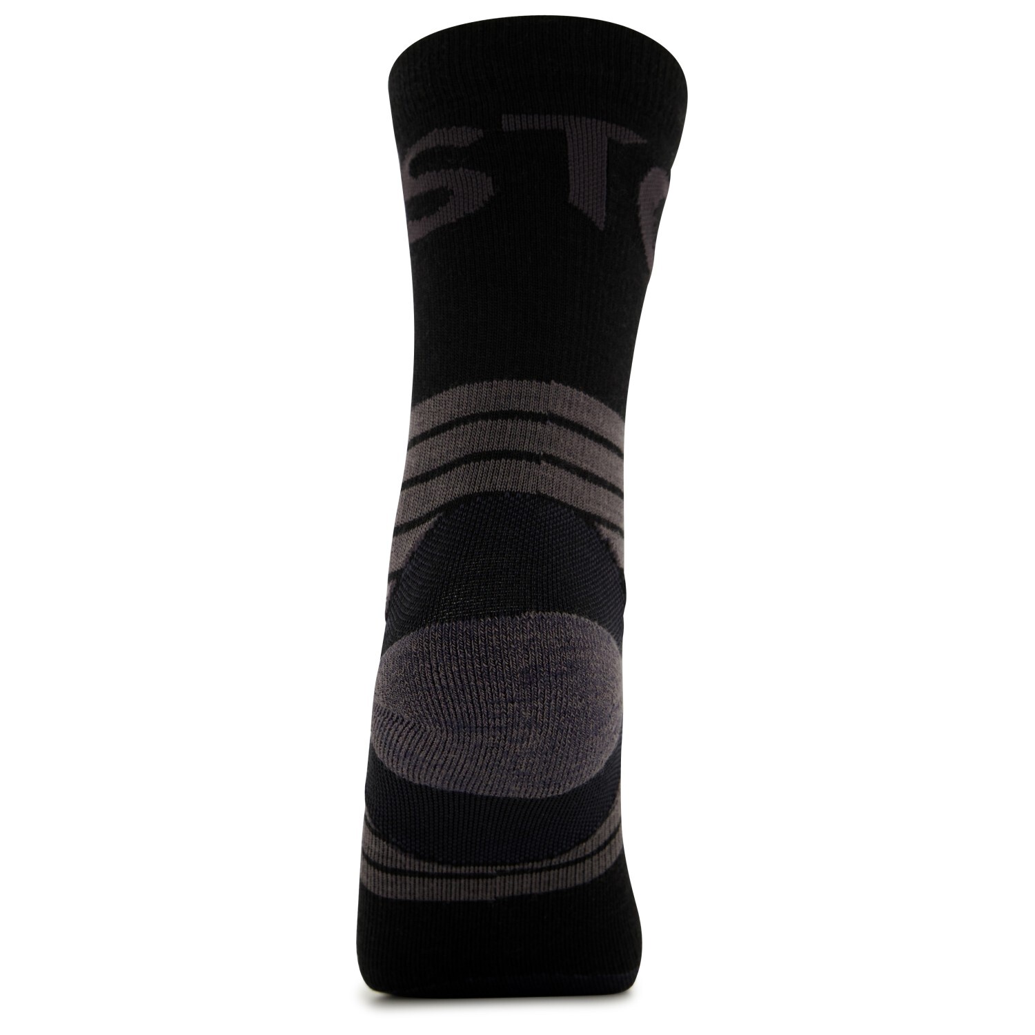 Бренд: Stoic Цвет: Monsoon/Lavender Носки Merino MTB от Stoic выглядят непринужденно и обеспечивают максимальный комфорт вашим ногам во время езды на велосипеде. Смесь мериносовой шерсти и синтетического волокна уменьшает образование неприятных запахов и сохраняет форму и эластичность даже после многократных стирок. Носки разработаны так, чтобы обеспечить особую воздухопроницаемость в области средней части стопы, обеспечивая оптимальную вентиляцию даже в длительных поездках. Визуально большая надпись на каблуках идеально дополняет носки.