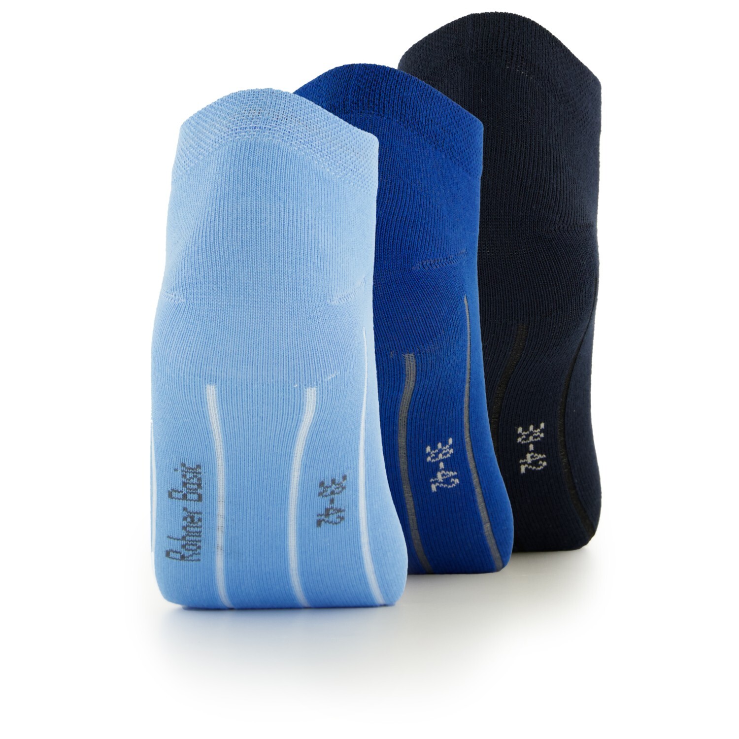 Бренд: Rohner Цвет: L'Blue/Navy/D'Marine Подходят для любого использования — базовые кроссовки (3 пары) от Rohner! Удобные носки в упаковке по 3 штуки впечатляют своей невероятно мягкой и прочной смесью материалов. Благодаря эластичному составу носки хорошо сидят на ноге, а низкая голенище не громоздится при ношении с кроссовками и спортивной обувью – как для занятий спортом, так и в повседневной жизни!
