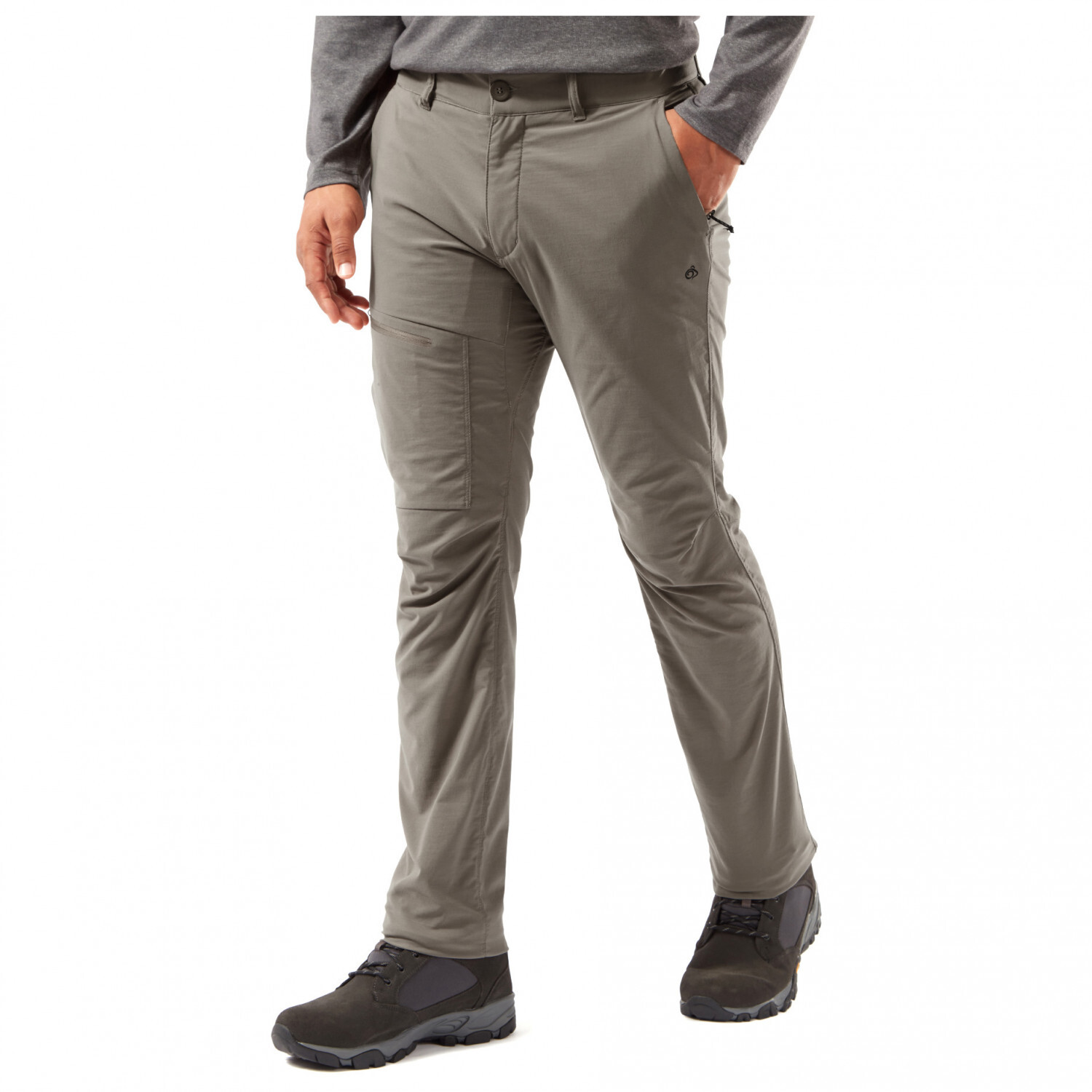 Бренд: Craghoppers Цвет: Pebble Nosilife Pro Active Trouser от Craghoppers — треккинговые брюки, которые невероятно универсальны благодаря своей функциональности! Брюки идеальны не только для треккинга, но и для походов и путешествий. Материал из синтетического волокна не только удобен для кожи, но также воздухопроницаем и быстро сохнет. Кроме того, эластан обладает эластичными свойствами, обеспечивая большую свободу движений. Лечение Нозилайф также очень практично, поскольку у клещей и других насекомых больше нет возможности ужалить или прокусить ткань.