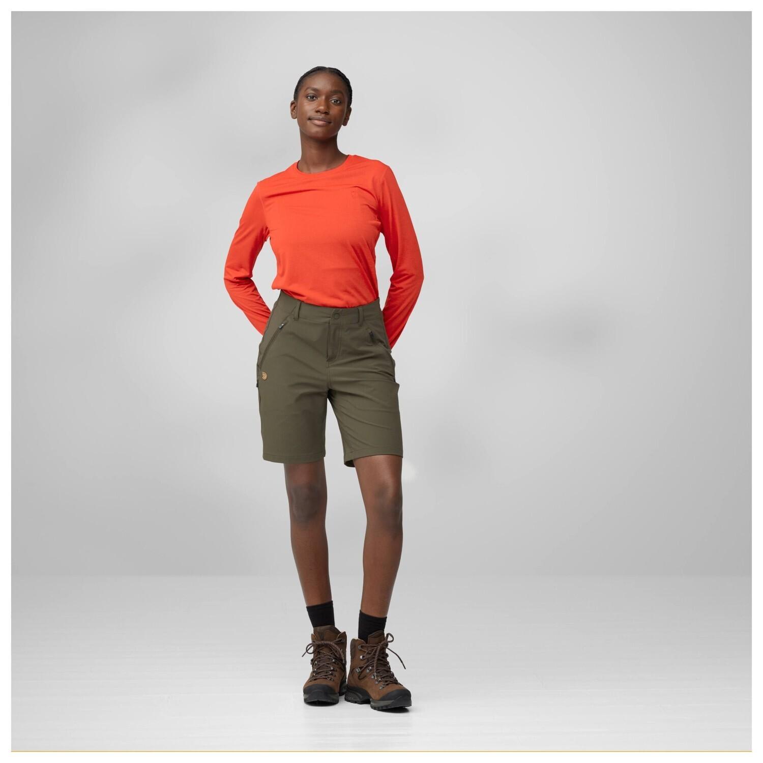 Бренд: Fjällräven Цвет: черный Для летних походов лучше всего подойдут женские эластичные шорты Abisko Trail от Fjällräven. Надежные шорты впечатляют своим прочным материалом, который обеспечивает достаточную воздухопроницаемость во время вашего тура. Это означает, что вся образовавшаяся влага выводится наружу через материал, и комфорт при ношении сохраняется в течение длительного времени, даже во время потных туров. При этом шорты прекрасно эластичны и идеально адаптируются к вашим движениям. Пояс также эластичен и гарантирует удобную посадку во время активной деятельности и движений. Практическая особенность: три кармана на молнии обеспечивают достаточно места для хранения важного оборудования в дороге. Незаменимая вещь в любом гардеробе для активного отдыха — женские эластичные шорты Abisko Trail.
