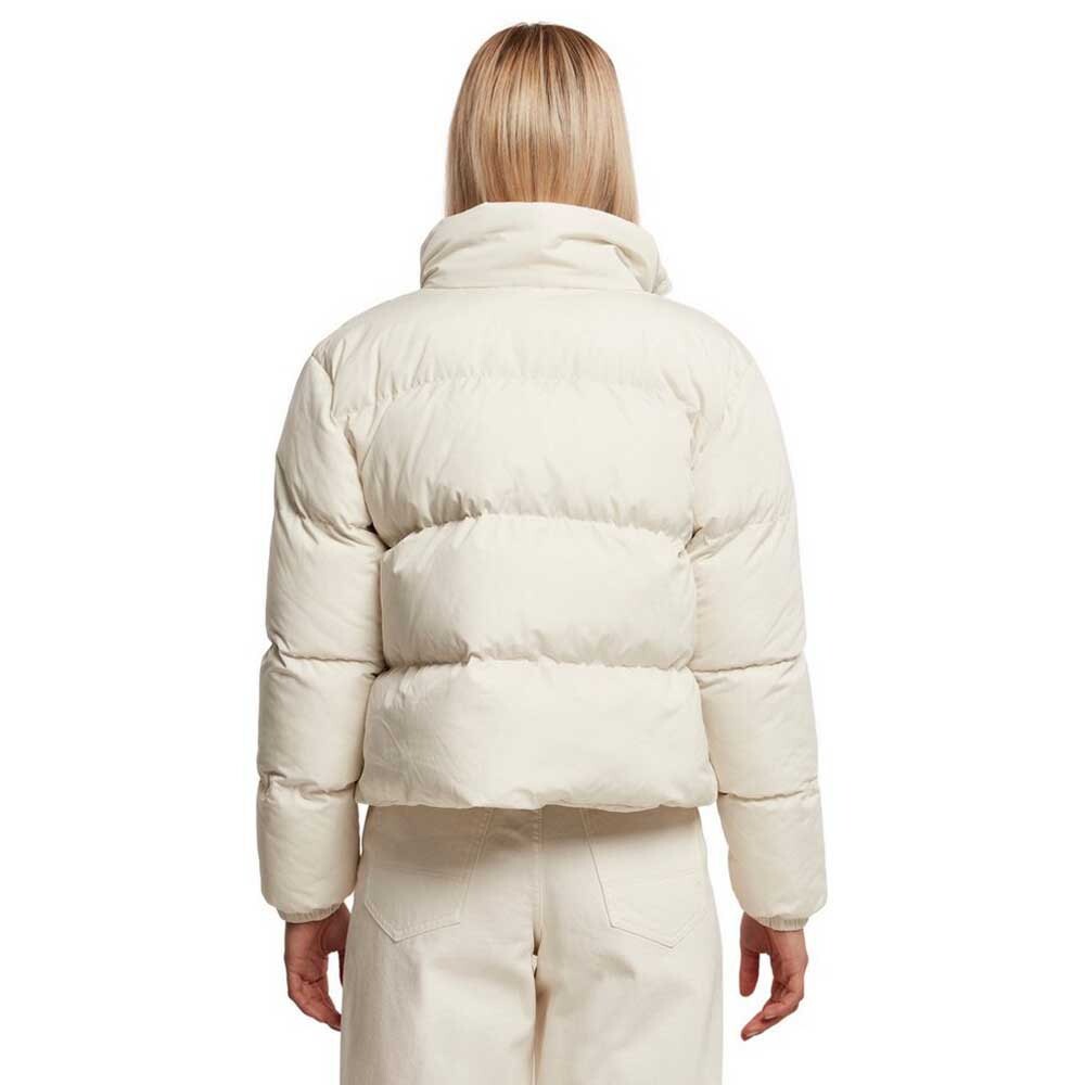 Короткий крой, но с объемной подкладкой – вот эффективные составляющие этой женской куртки-пуховика, которая легко сочетает в себе стиль и комфорт. Прочные поперечные швы подчеркивают стеганую ткань, а узкие эластичные манжеты обеспечивают комфорт при ношении. Пуховик с эластичной кулиской со стопором по низу обеспечивает удобную возможность регулировки. Кроме того, он имеет уютный воротник-стойку и боковые карманы и надежно застегивается на молнию. Крой свободный. Он изготовлен из полиэстера и на подкладке из тафты.