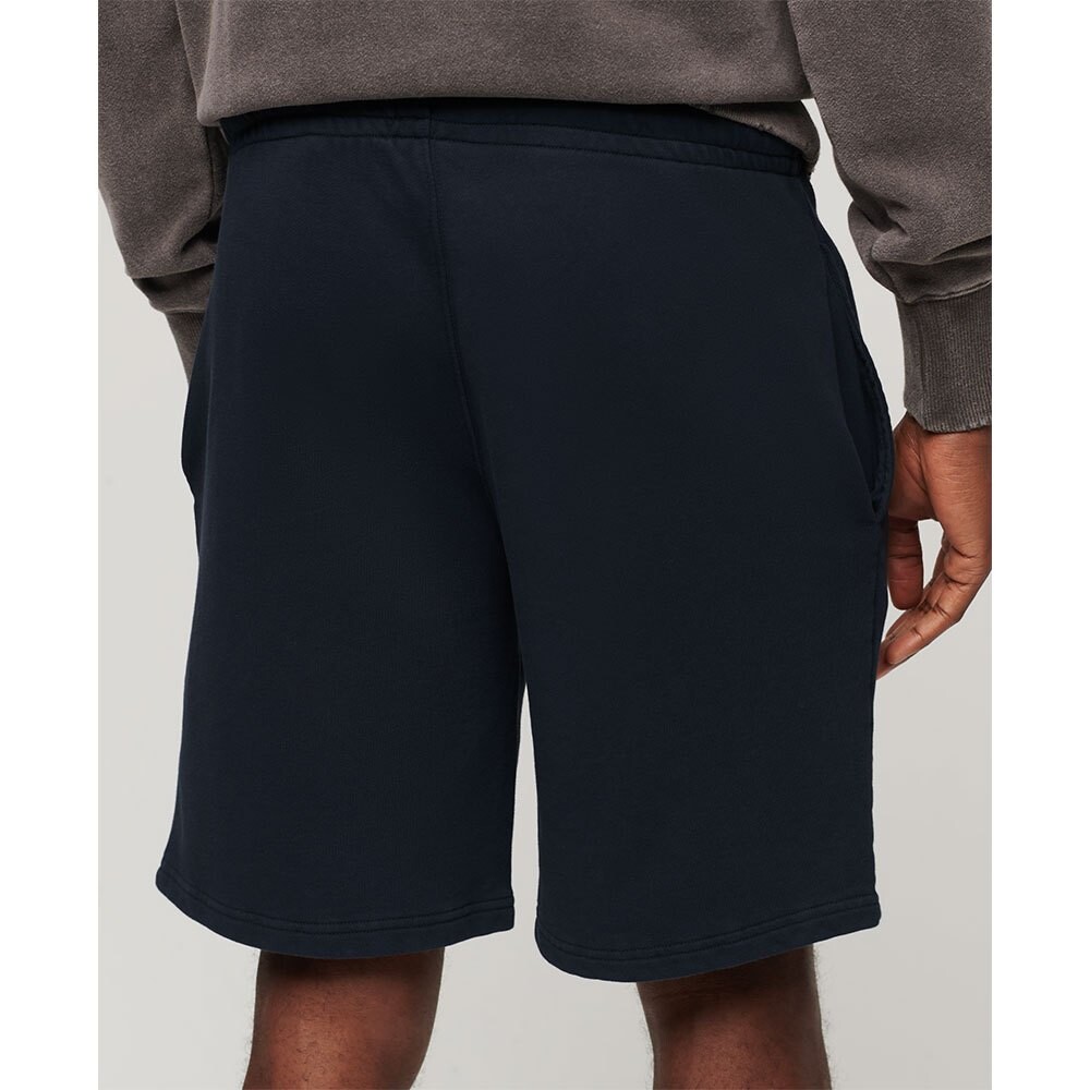 Спортивные шорты SUPERDRY Vintage Washed Sweat Shorts темно-синего цвета Eclipse — стильное и удобное дополнение к гардеробу любого мужчины. Эти шорты изготовлены из мягкой и прочной смеси хлопка и имеют винтажную стираную отделку, создающую поношенный вид. Эластичный пояс с застежкой-кулиской обеспечивает индивидуальную посадку, а два передних кармана и один задний карман предлагают практичные места для хранения вещей. Эти шорты идеально подходят для отдыха дома или выполнения поручений. Они универсальны и их легко стилизовать. Сочетайте их с футболкой с графическим рисунком и кроссовками, чтобы создать повседневный и стильный образ.