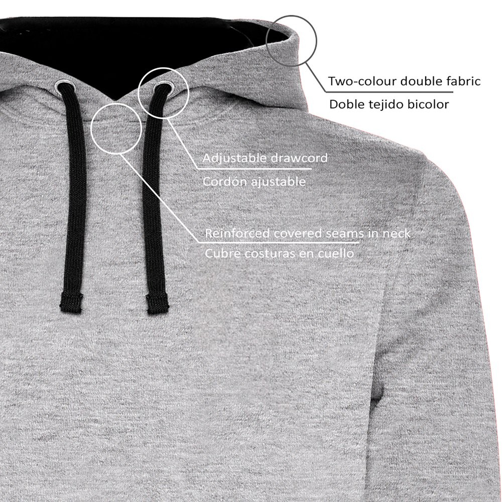 Двухцветная толстовка с капюшоном из двойной ткани, контрастный регулируемый шнурок.