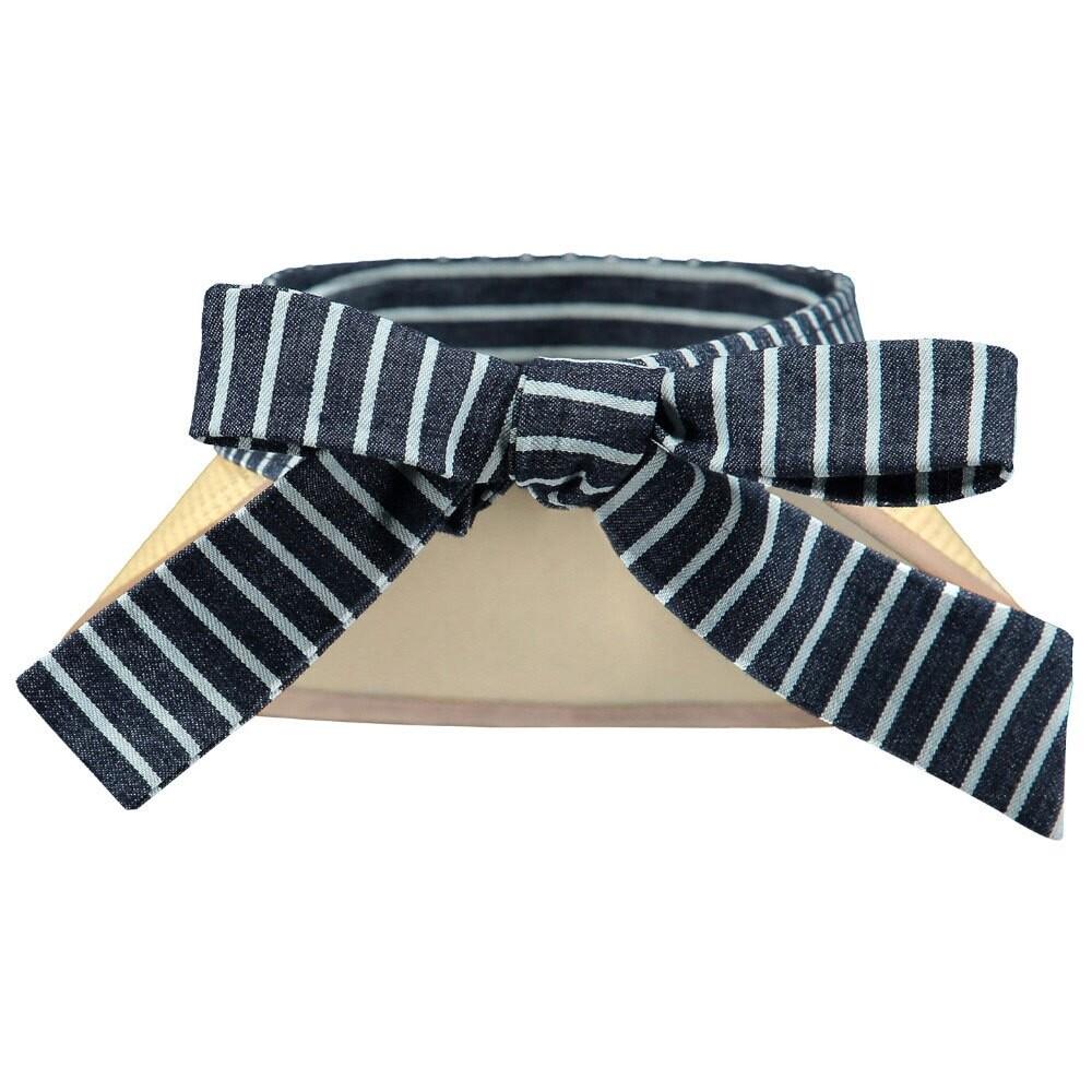 Этот козырек изготовлен из смеси хлопка и бумаги и дополнен регулируемым бантом сзади.